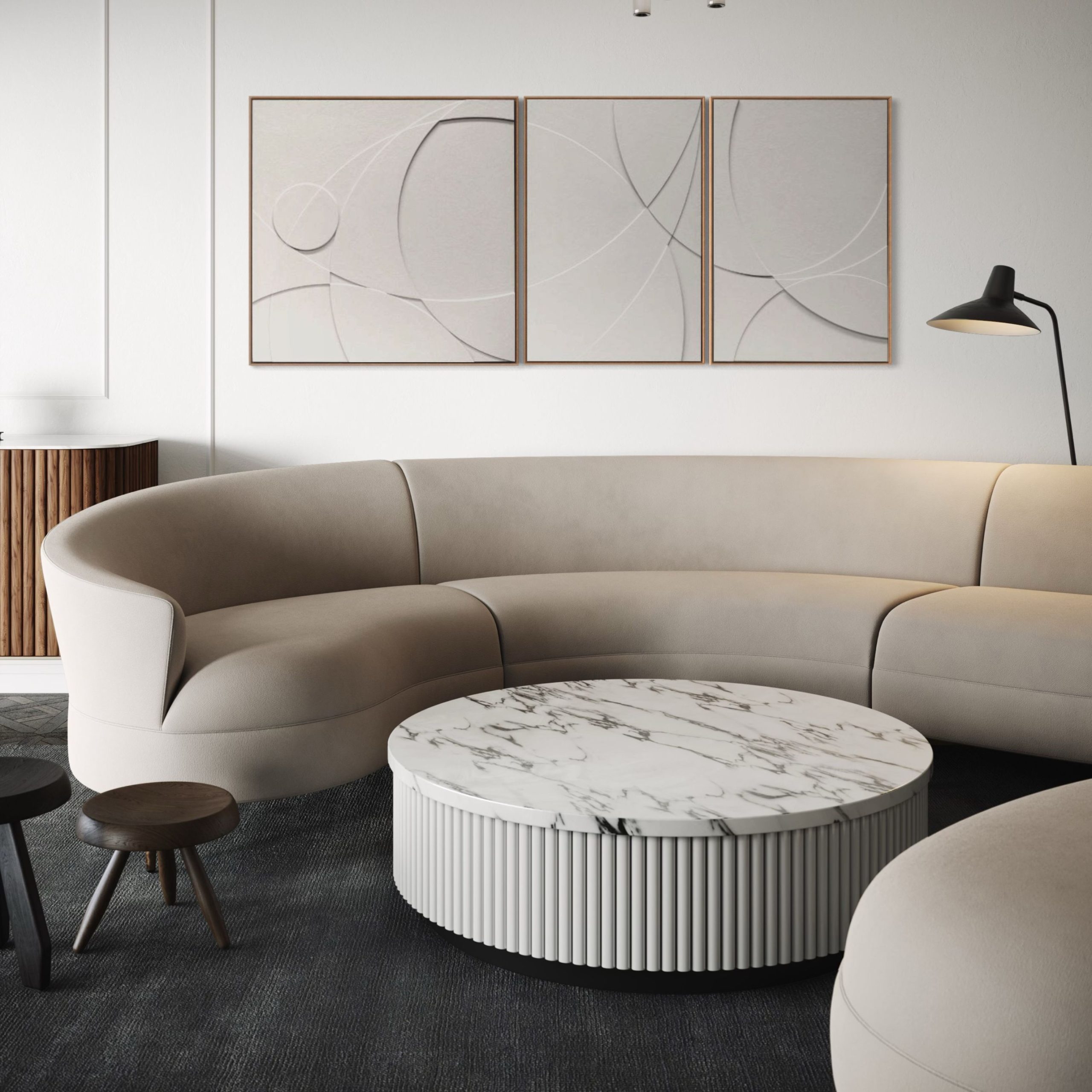 Painted in Calm Shell, a soft and neutral hue, this piece holds visual interest without dominating the room. It’s ideal for long feature walls, entryways, or tranquil commercial spaces that call for depth and harmony.
