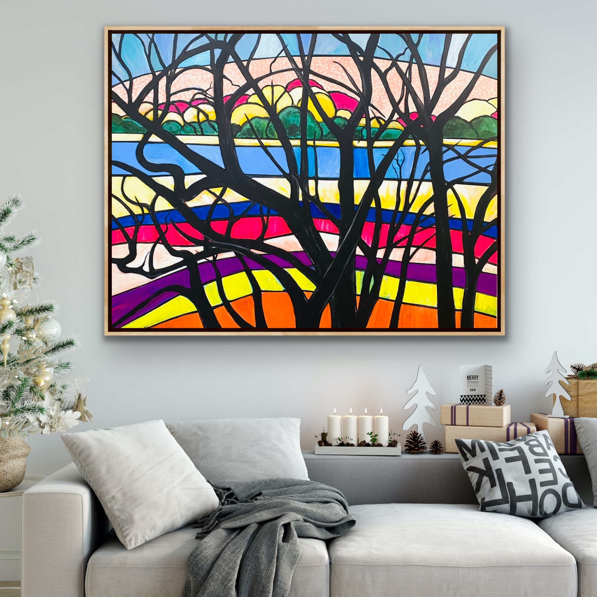 An extra large abstract, modern, wetland artwork inspired by the stark, twisted trees of these intriguing landscapes……a timeline of history, standing for all to see…….artworks with meaning created to enjoy.