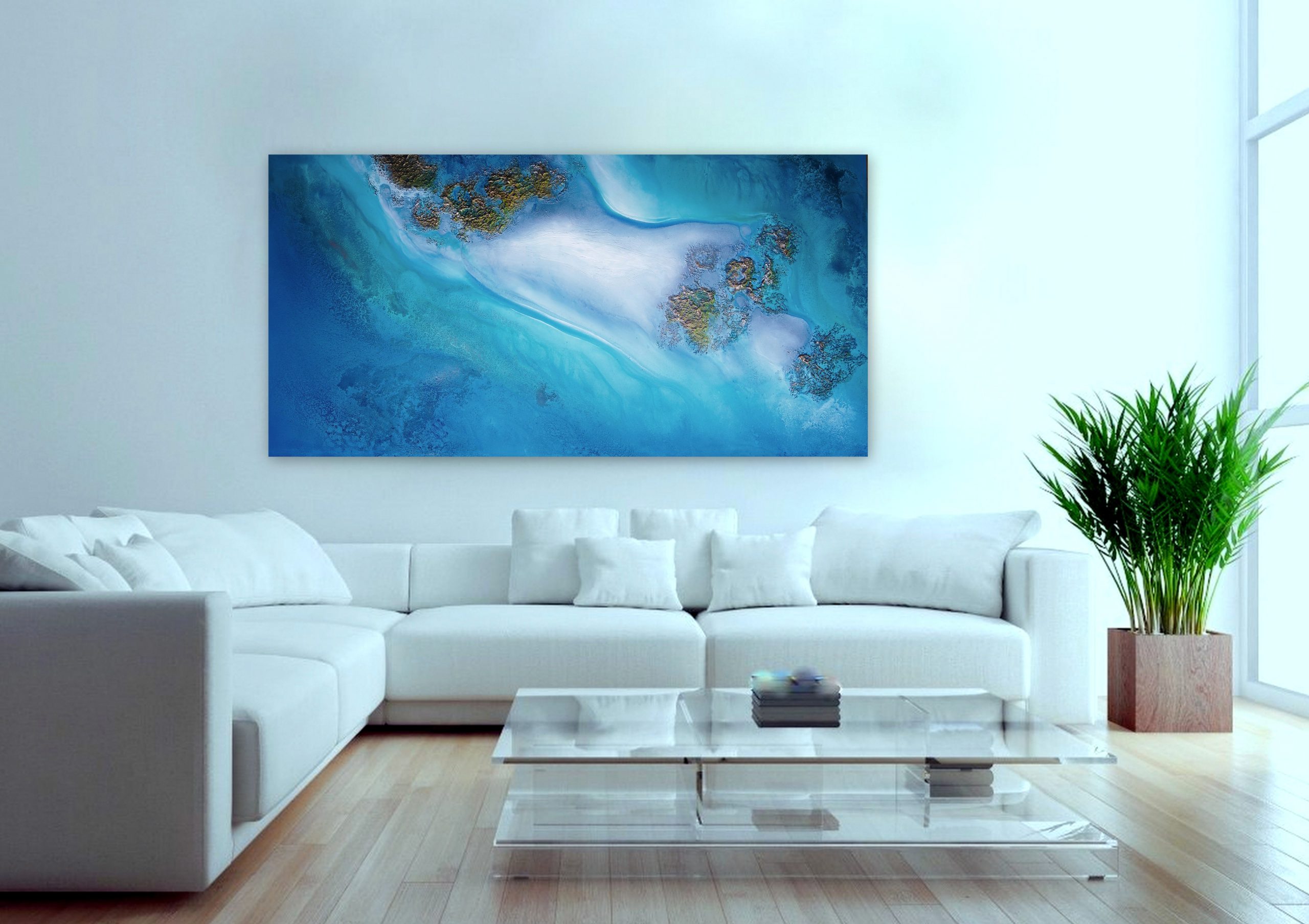 Large Ocean wall art “Starlit Cay” is a mixed Media 3 d painting, inspired by the beautiful Cays of the Great Barrier Reef.