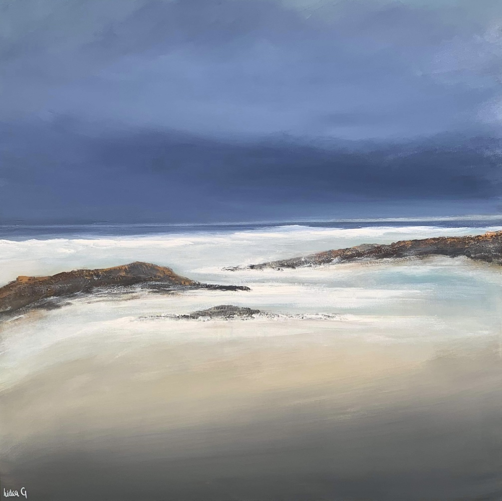 Inspired by the incredible diversity of the Australian landscape from its rugged coastlines, snow-capped mountains and the idiosyncratic landscape of the sandy desert with its sun baked monoliths and rainforests. The edges of the painted are done in Lamp Black and comes with professional wire hanger and a Certificate of Authenticity.