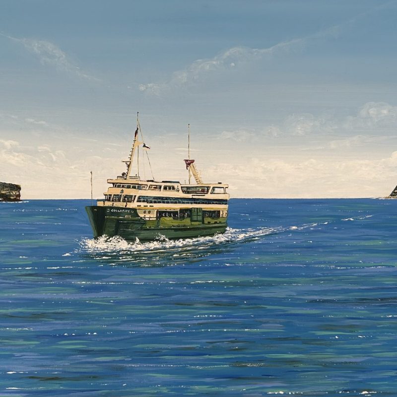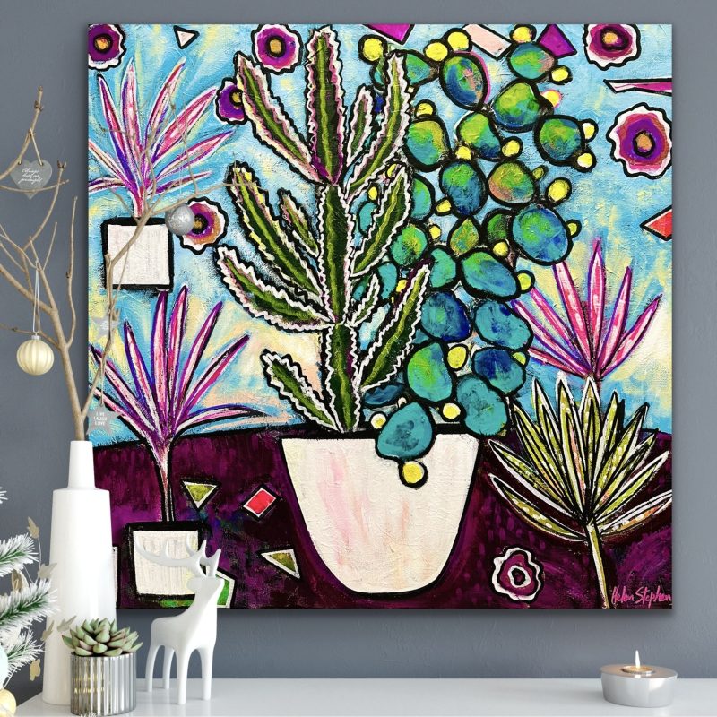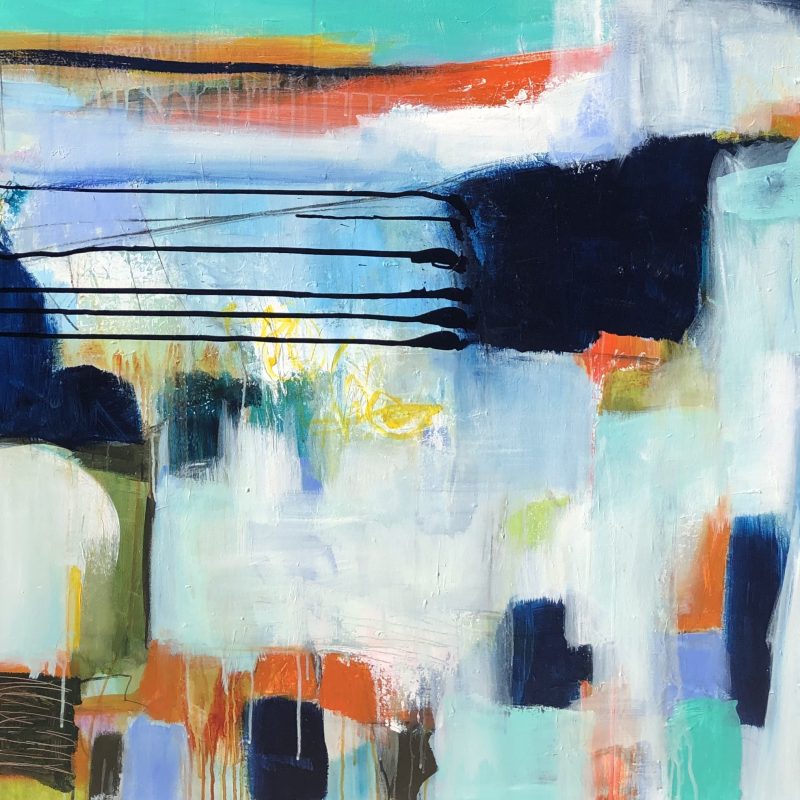 This painting includes a white timber frame with white mat board (mat board window 39 x 39 cms)