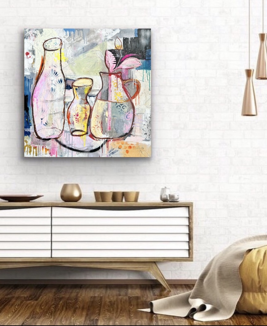 The artwork is a still life piece with vases and will give maximum impact to any room.