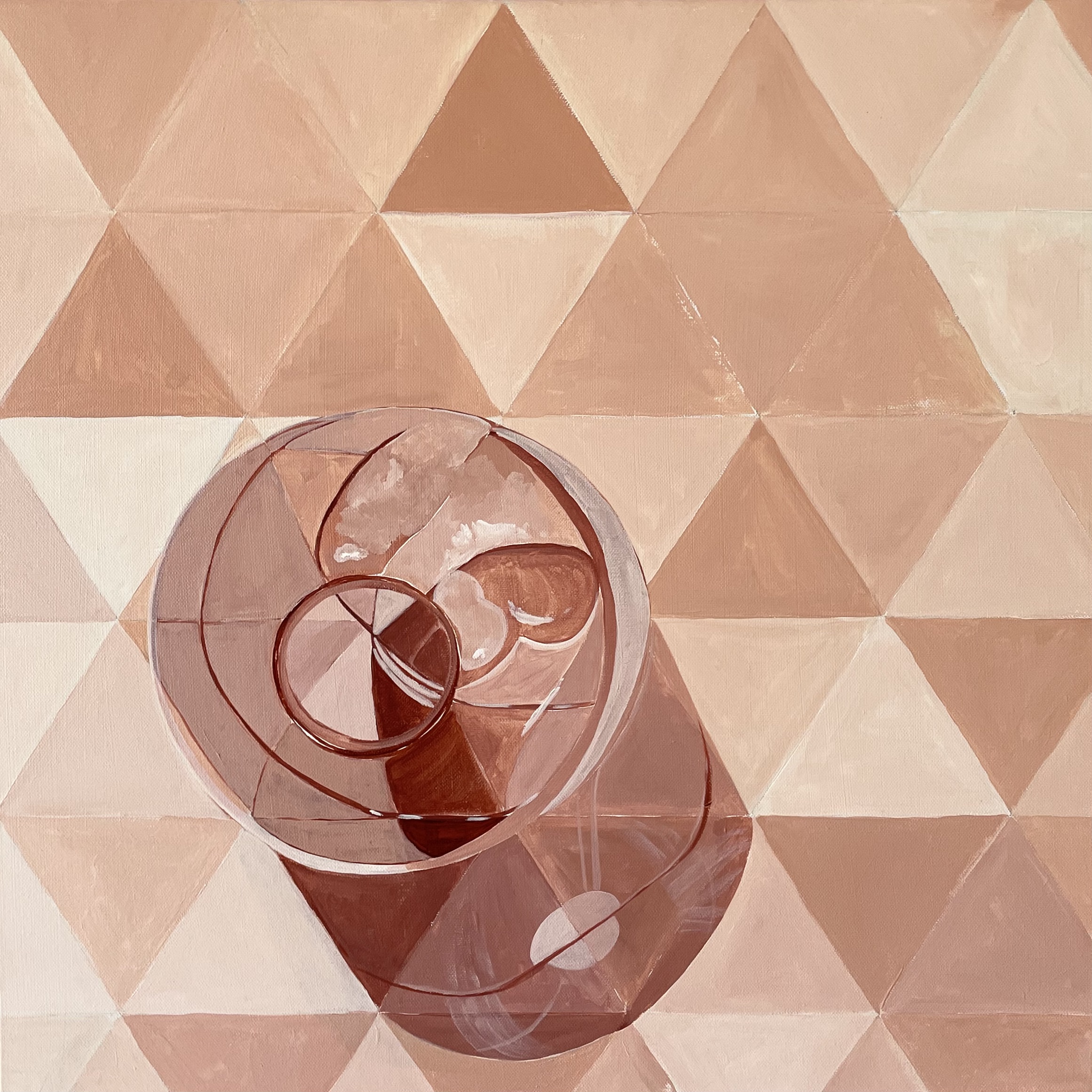 Still Life with Glass Vessel by Vanessa Maver – During lockdown I had started a series ‘Garden Party’ which was a celebration of get togethers with friends and families. Shortly afterwards I created a series of glass vessel series, which highlighted those alone moments captured during the early mornings or late evenings.