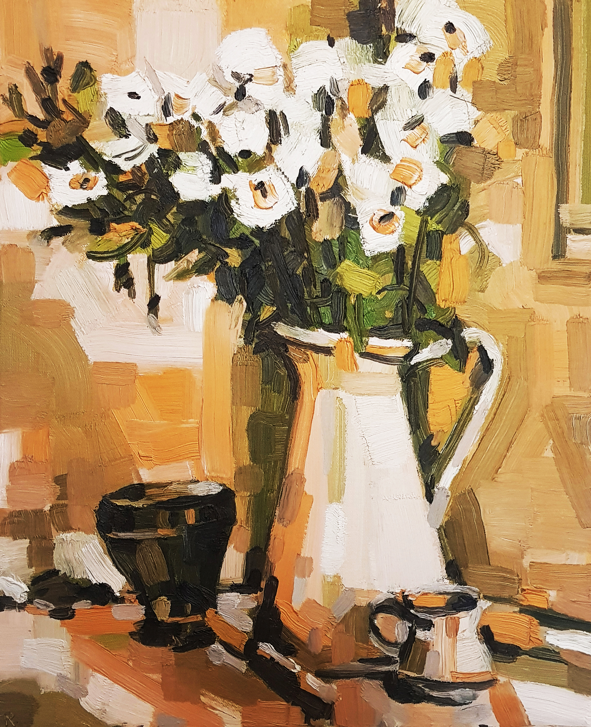 The morning composition is filled with warm light by Alexey Pushkarev – Impressionist style