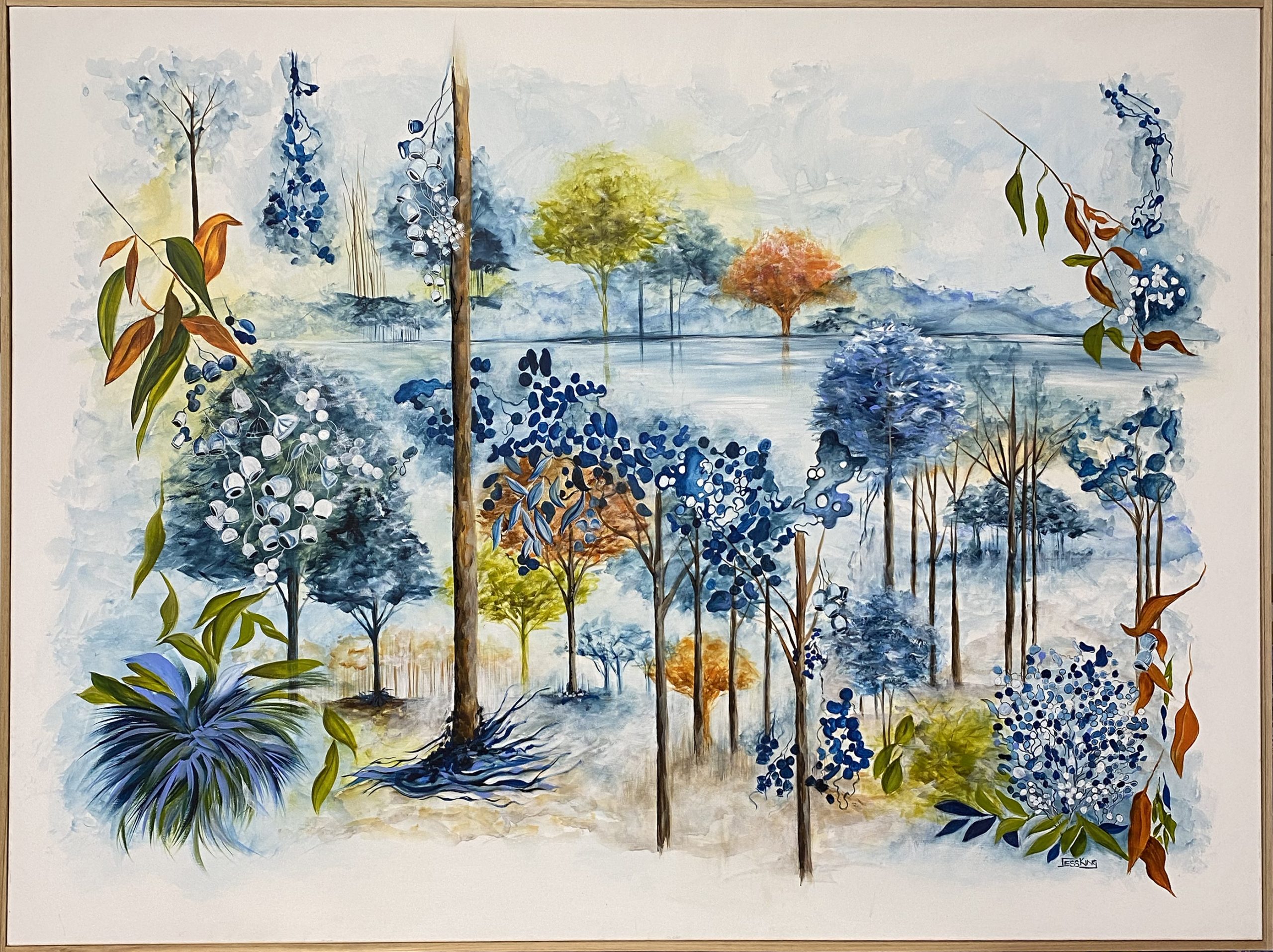 Still waters through the trees by Jess King – Walking through the Australian bush is always full of colour and plant life. If you are hiking, walking or heading to the beach there will always be magnificent nature around to captivate you. My idea is to gather them together in one space for you to be drawn to constantly.