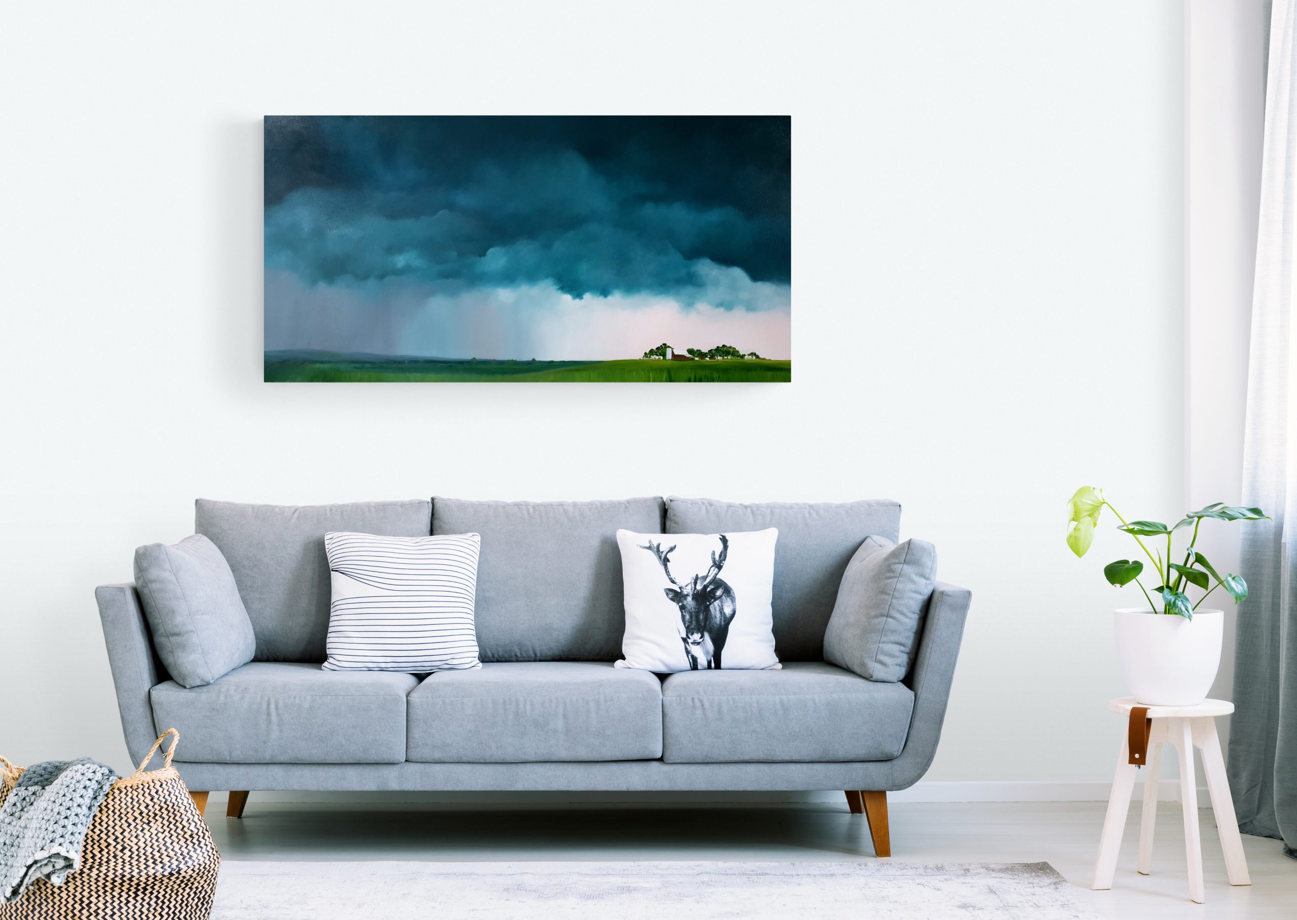 This artwork is also a reflection of the quiet before the storm and the eerie stillness that precedes the wild weather to come. The fragility, the strength and the security of home as sanctuary are all evident here.