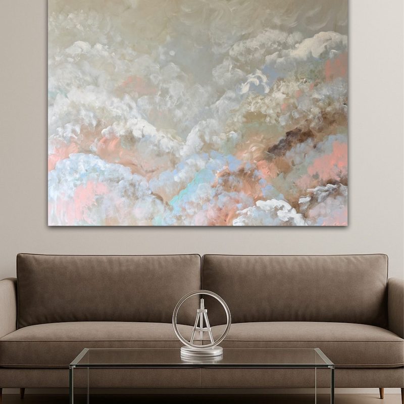 Storm Cloud by Dinah Wakefield is inspired by the light, the colours and the natural beauty of the Noosa region of Australia. “What I love most about Noosa is the interplay of light. From the oceans to the clouds, to the river estuaries and the hinterland, this canvas unfolds before me every day and finds expression in my paintings”.