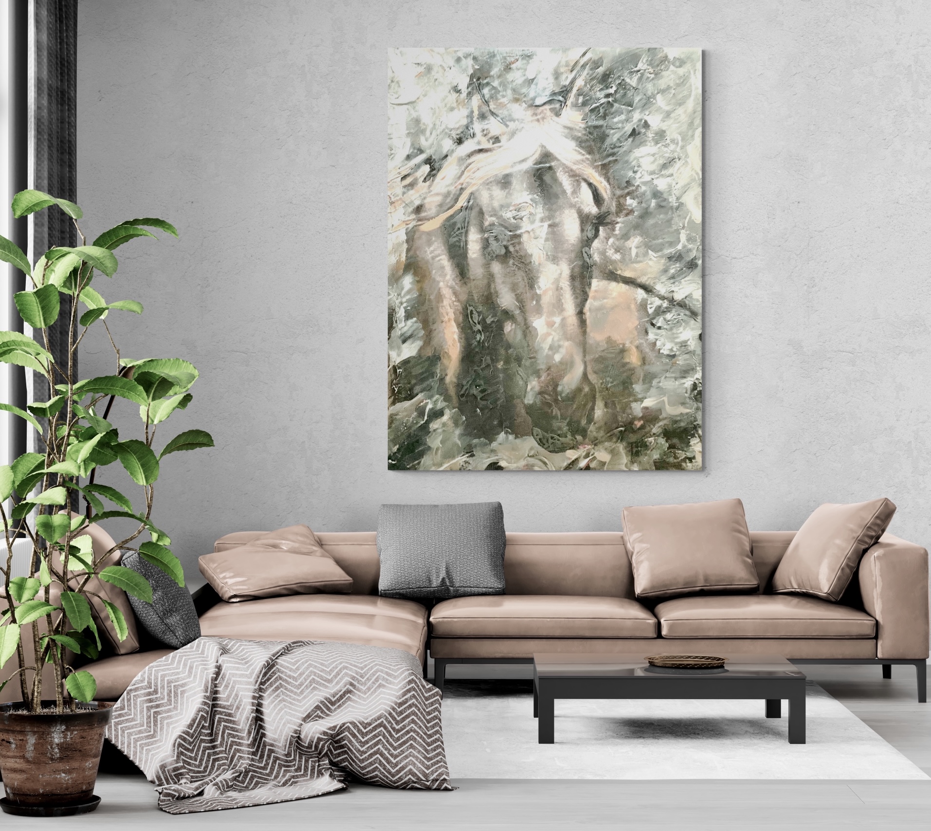 Modern Original with Laurae signature texture and movement. Depicting an exciting macro horse scene, this large statement abstract complements any modern home and collection.
