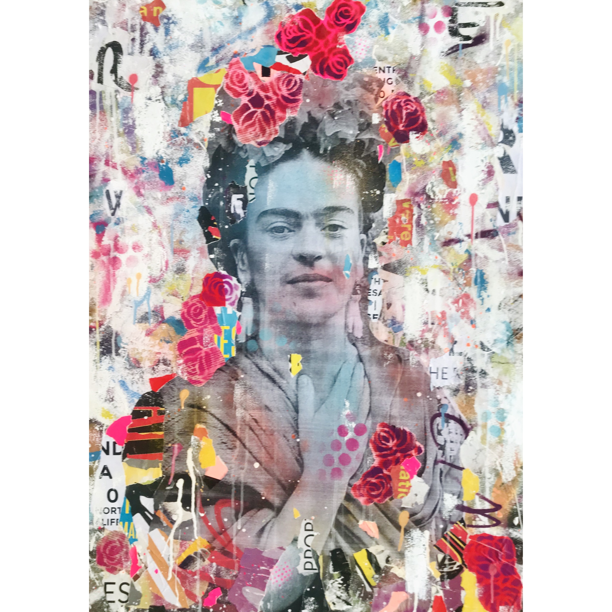 Then the main Image of Mexican Artist Frieda Khalo was then given a rustic appearance with further Paint splashes and Paper.