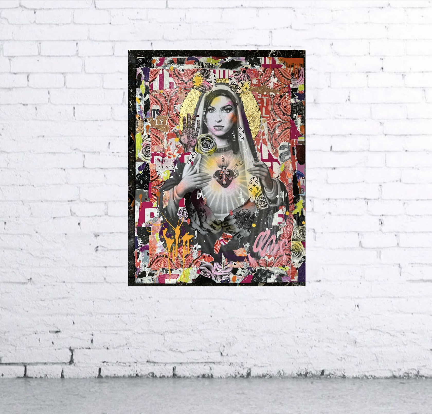 My artworks mix Pop Art & Street Art and this image of Amy Winehouse was created as a collage and layered with paper and paint. The work comes on a quality stretched canvas and the street posters are wrapped around the edges of the canvas and it is ready to hang.