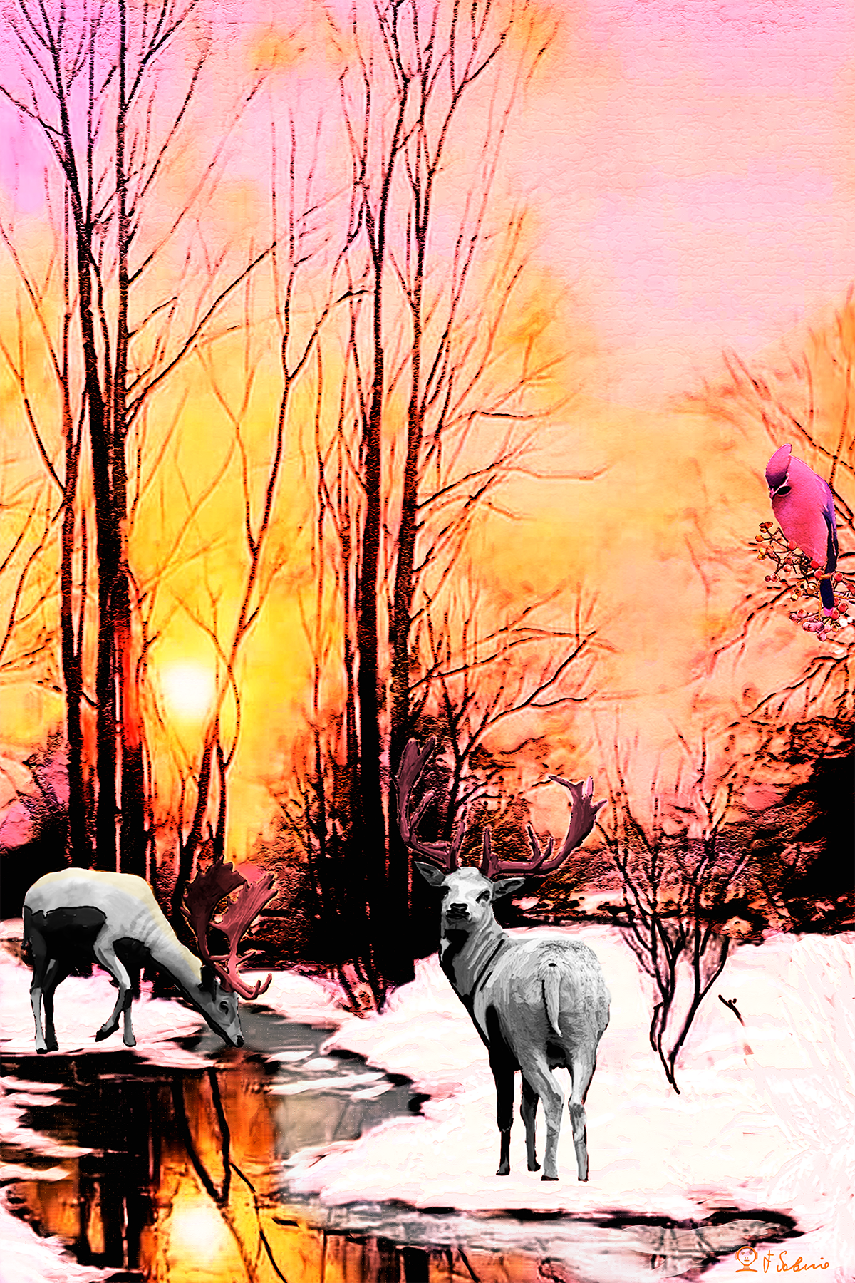 Street Urban Art Collection Number 388 The white stags Digital painting by Francesco Sobrio – Urban art is created with the intention of permanence, a higher appreciation for the artwork, and the desire to exhibit pieces over a long period of time, like traditional styles. Urban Art defines the movement of Street Art out of the street and into galleries, museums, and private displays.