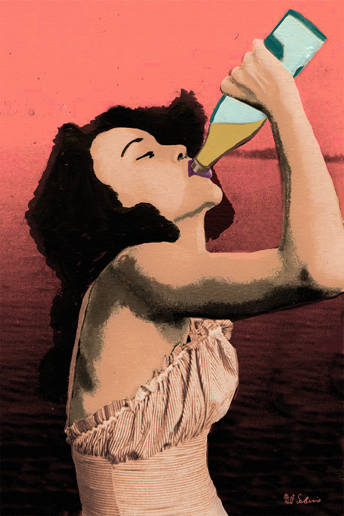 This image is a digital artwork titled ” woman, very Thirst ” by Francesco Sobrio.