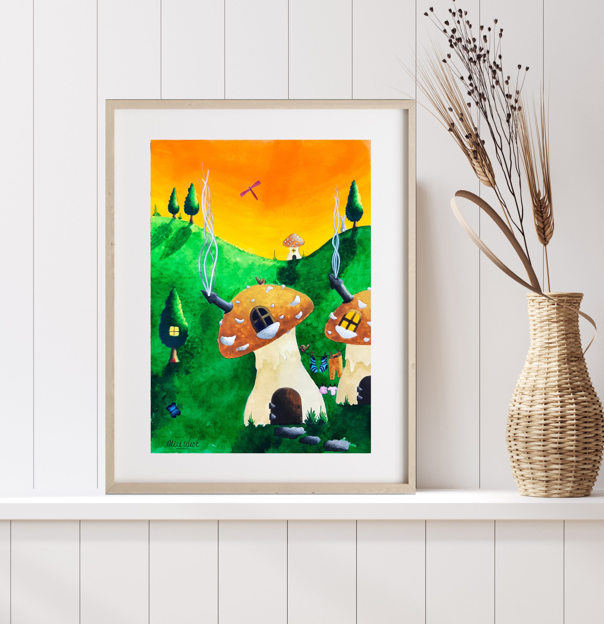 This whimsical and colourful painting will bring a sense of fun to any room. With adorable mushroom houses, that leave you wondering what lives inside. I love creating paintings that bring a sense of magic and wonder. This whimsical and colorful painting is more than just decor – it’s an invitation to adventure. With its adorable mushroom houses, it captures the imagination and sparks curiosity. As an artist, I strive to create pieces that transport you to another world, filled with magic and wonder.