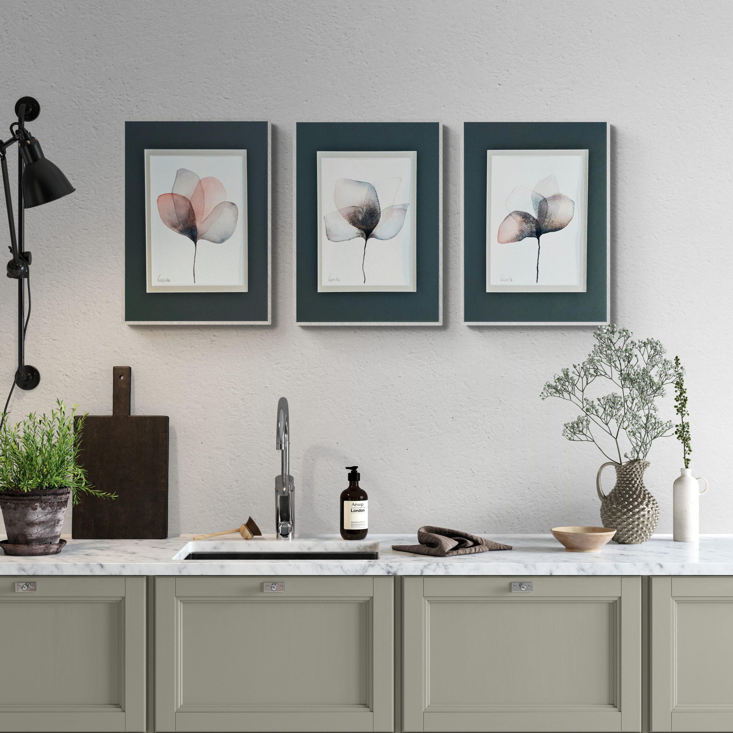 Sublime by Lucinda Leveille is a trio of watercolours playing with transparency again, this time I have set them in a double matt of soapstone and charcoal. The Shadow Violet granulating watercolour is a fantastic pigment to work with and makes for a great colour combination. Â Each piece is 29.7 x 42 cms – the perfect A3 size for framing. A great decorator piece for any room.