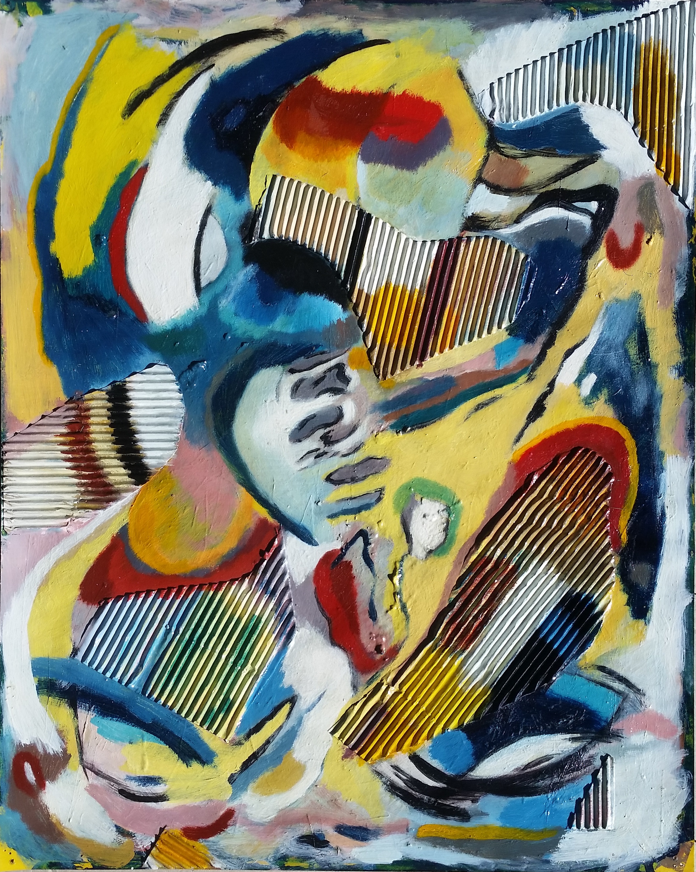 Acrylic and collage of cut-out cardboard on paper