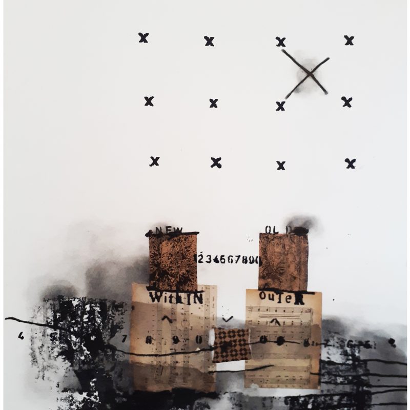 Acrylic and ink on canvas with a wooden frame