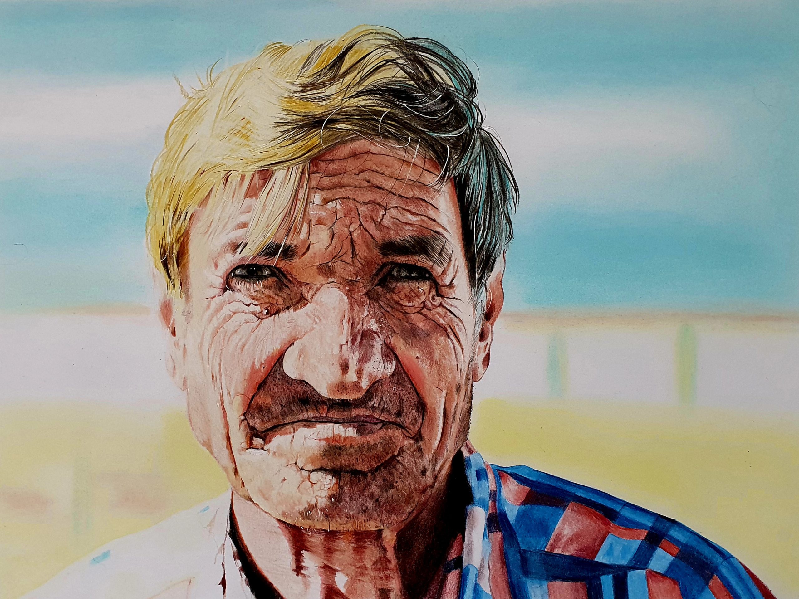 Original polychromos pencil and soft pastel portrait on drawing paper 220GSM