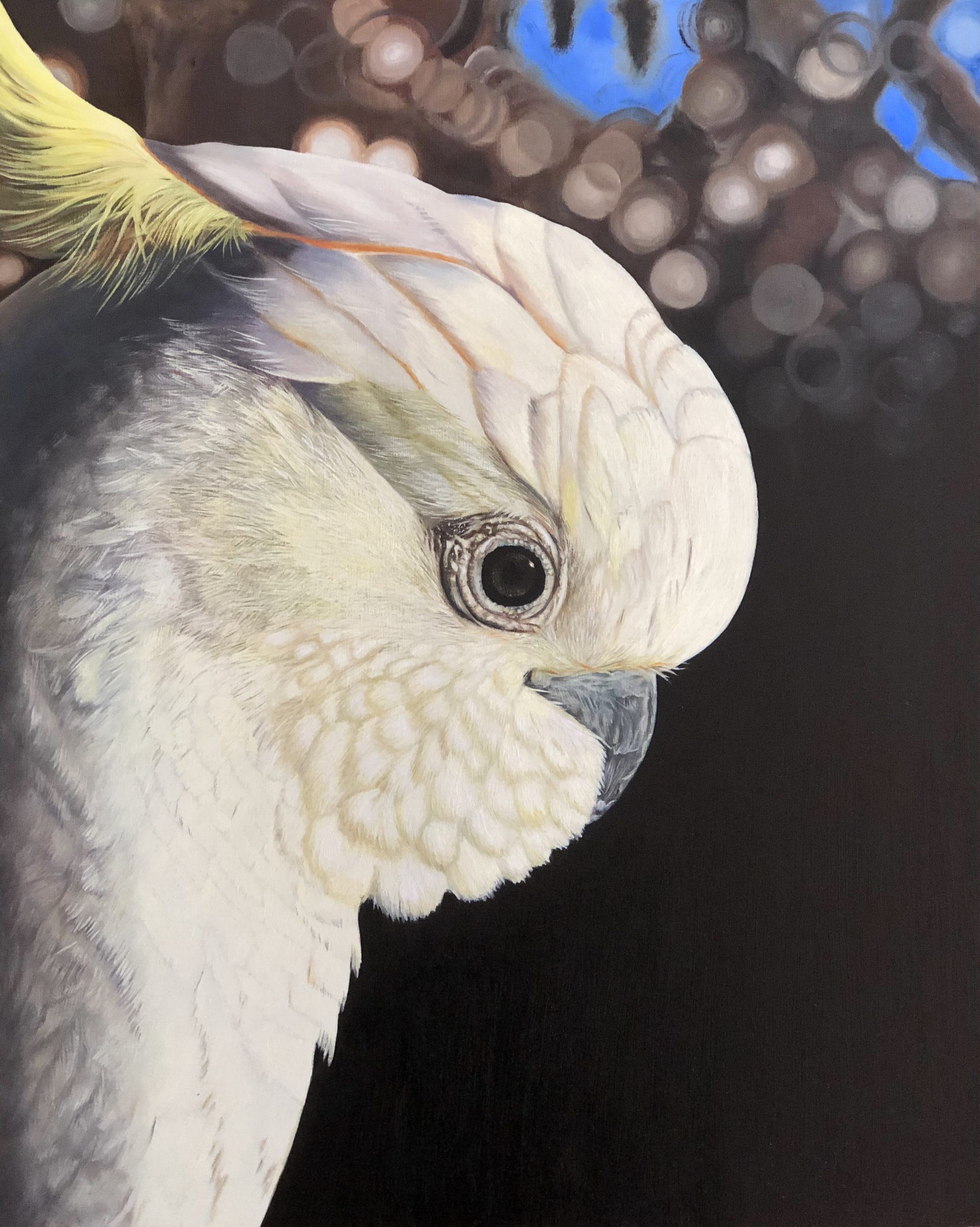 Original Oil Painting on wooden board. Inspired by a very friendly daily visitor on my balcony while I was staying in a rented accommodation in Lindfield.