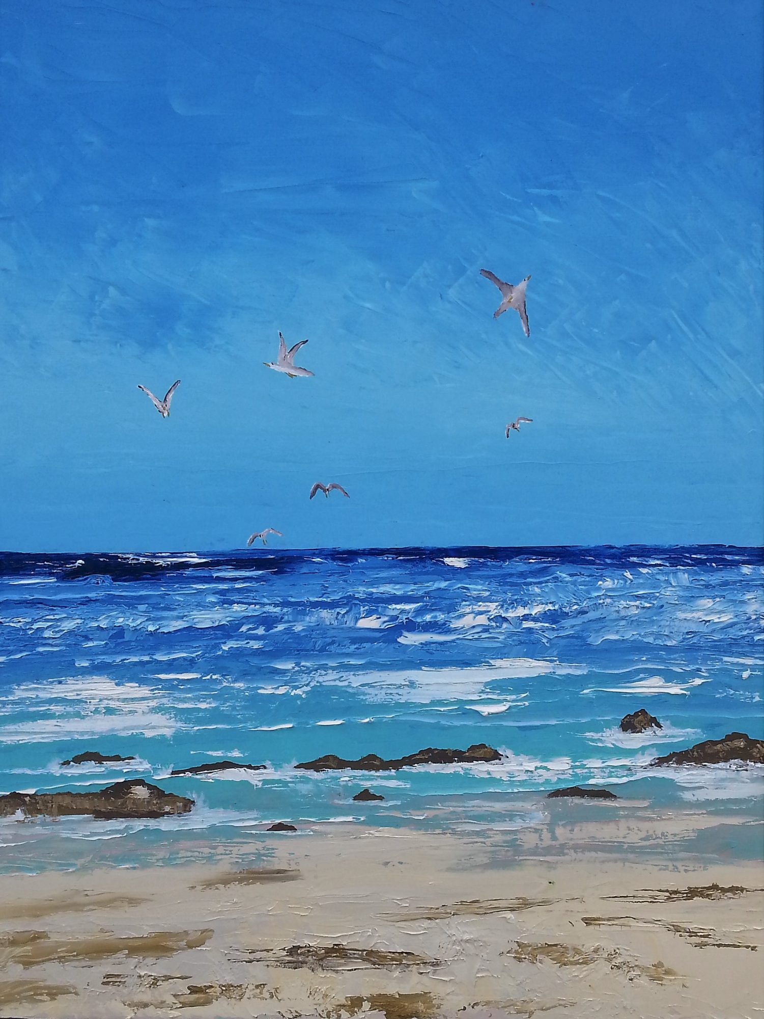 This is from being at Sultana Point Edithburgh S.A on holidays and on fishing trips, the ocean up there is well known for its wild weather. but still a great place for a holiday.many good memories. painted on canvas deep sided ready to hang.