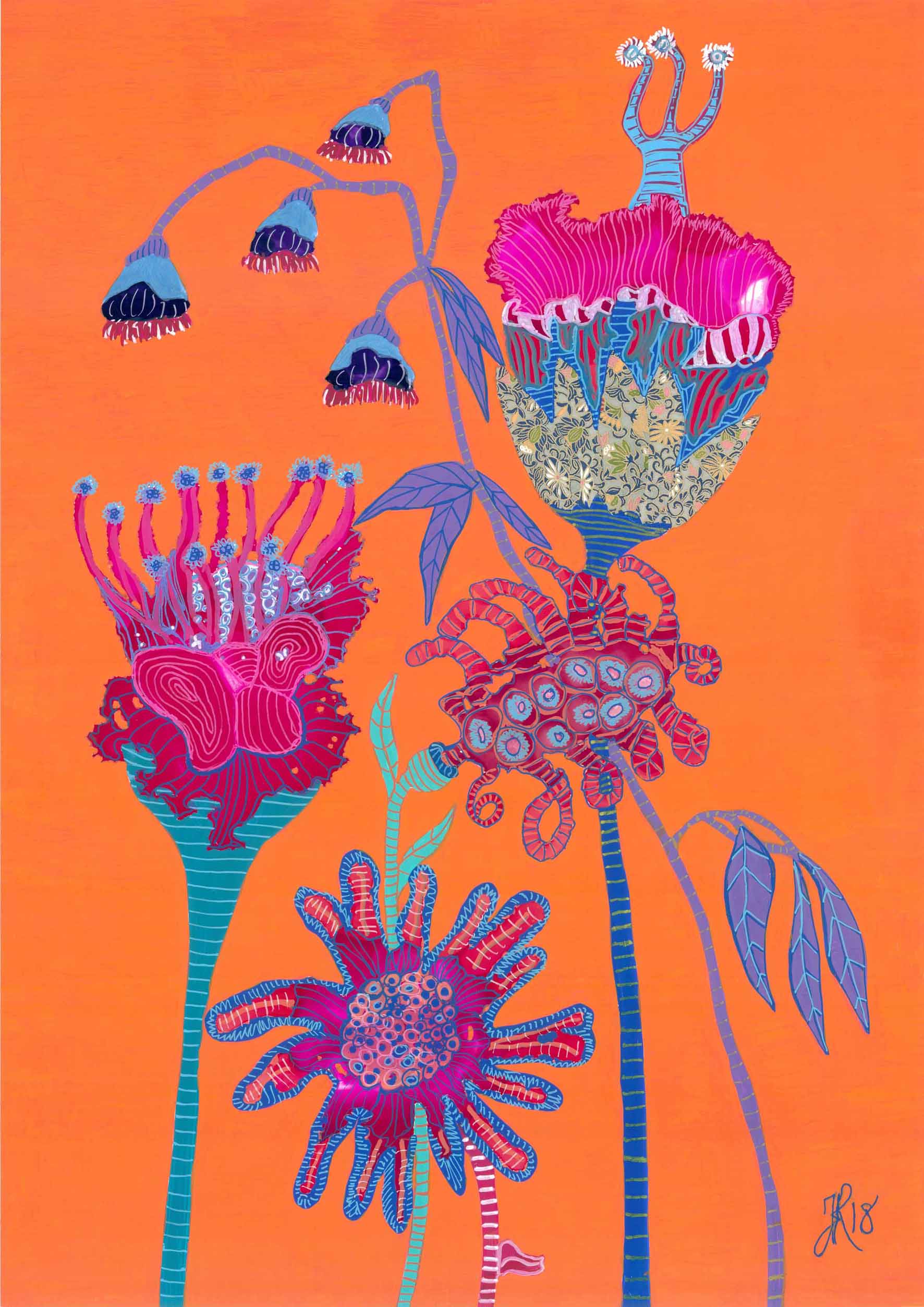 Summer by Tracy Robinson – Ink, acrylic, collage and alcohol ink on canvas on yupo paper this art work comes unframed and will be delivered rolled up in a tube.