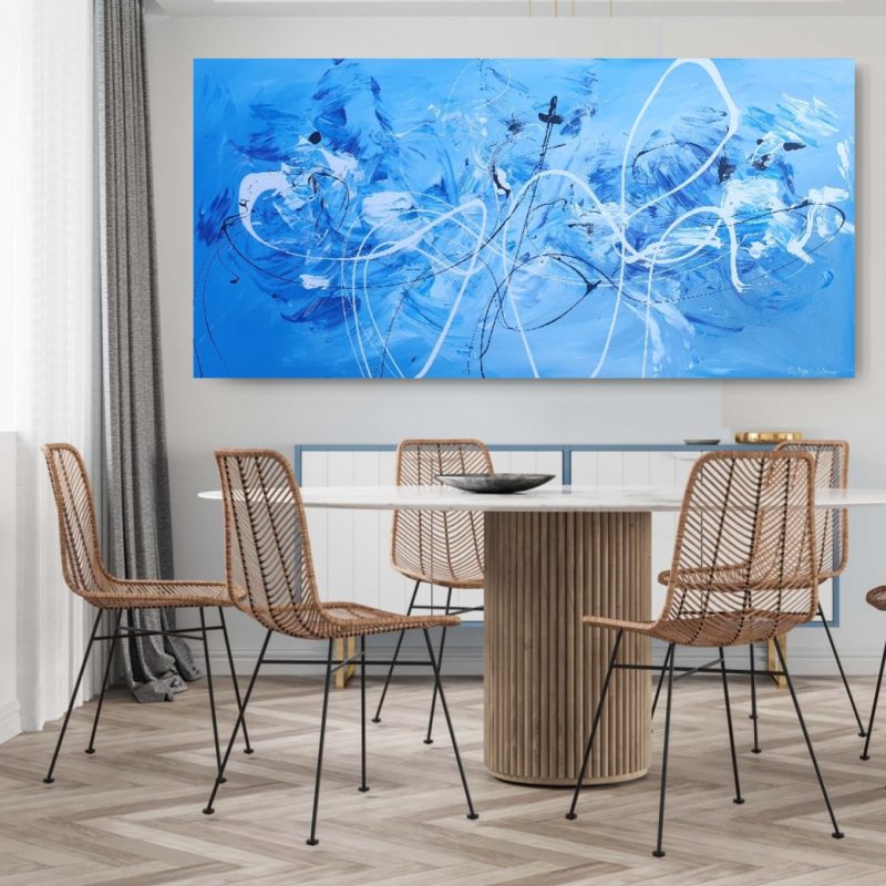 This contemporary painting features an expressive bouquet of flowers created with palette knife and thick impasto oil paint. The vibrant colours within the floral composition contrast harmoniously against the softer background, creating a vivid yet serene ambiance.