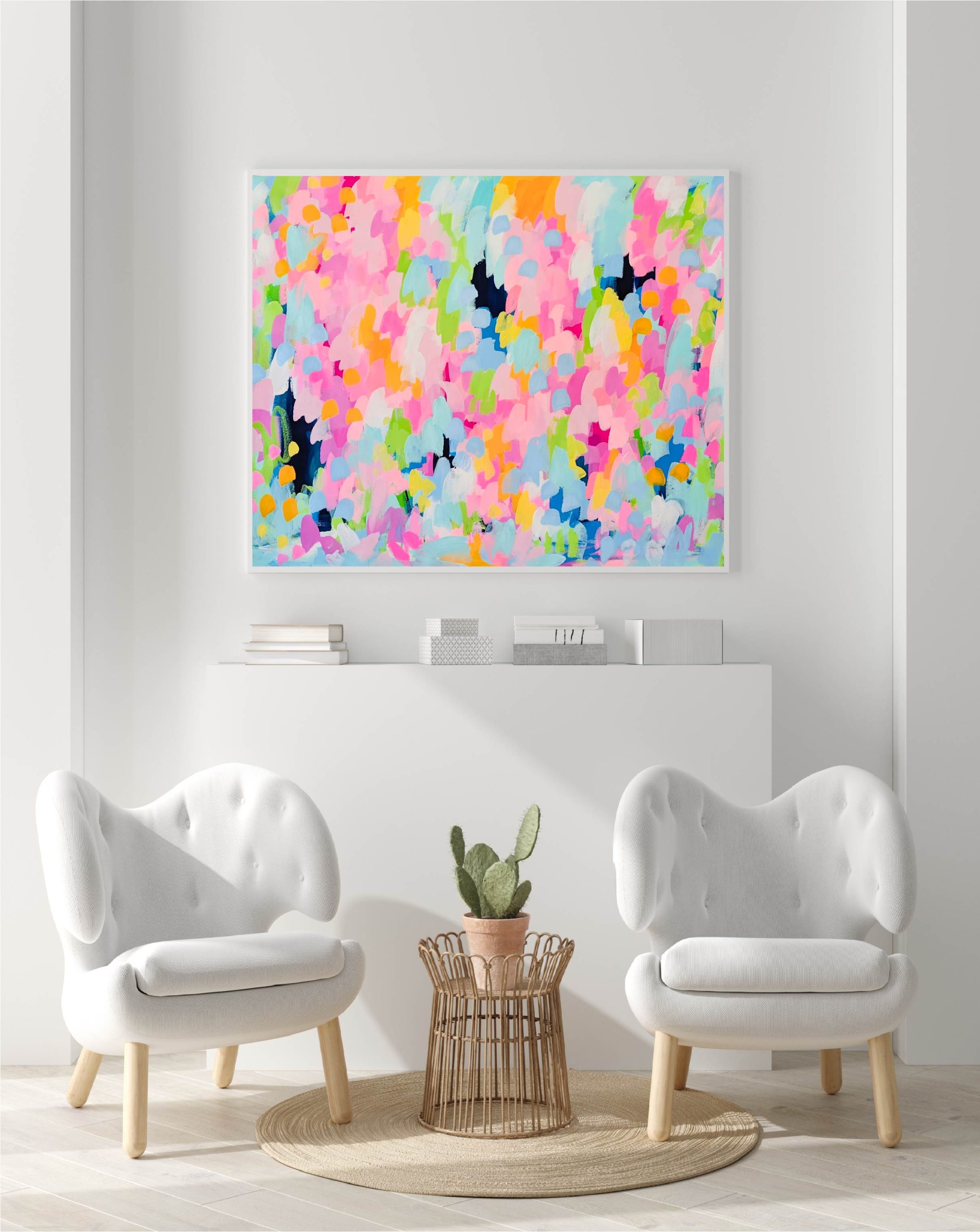 I am feeling so much joy creating these artworks and exploring this style that came about while experimenting with some different mediums and brushes in the studio this week. I am drawn to these colours as they uplift my soul and make me happy in a time where I feel we can all do with some happiness and colour in our lives. Joyous and free with a whole lot of energy which I hope you can feel when looking at these artworks.