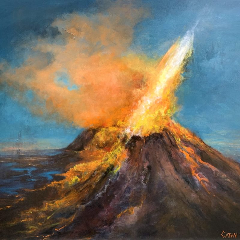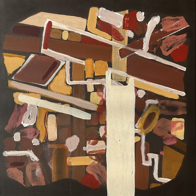 Painted with brushes and palette knives for textured mark making and vivid colour.