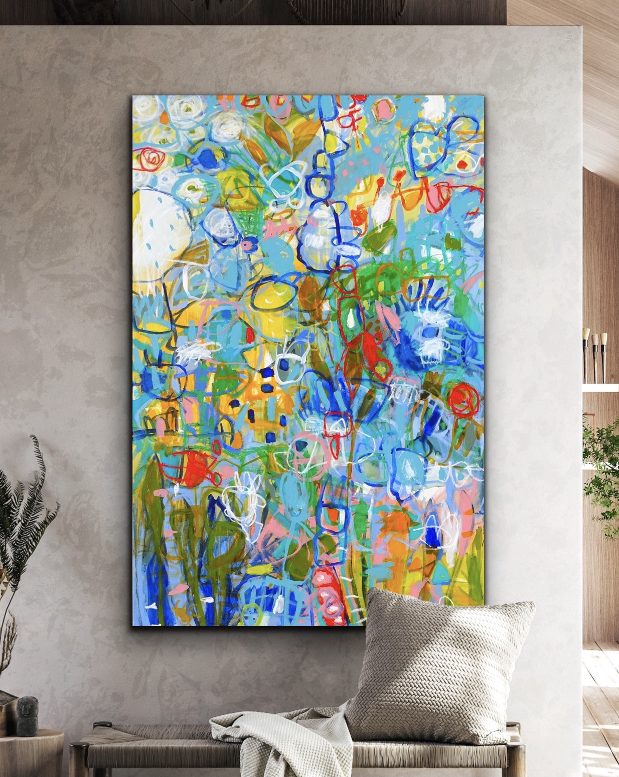 This work is oil and acrylic on 100cm x 150cm on Fine Belgian Linen, signed on the front and sent with an artist cv and certificate of authenticity.