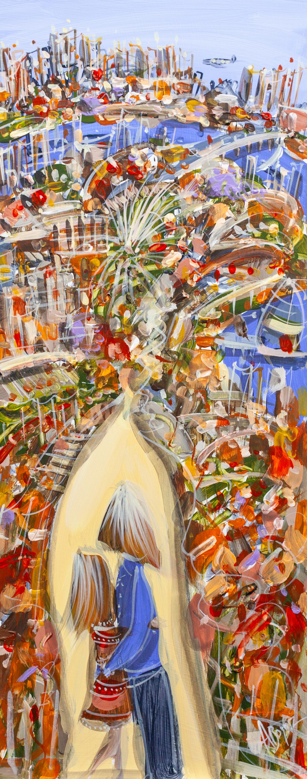 My paintings draw inspiration from a broad range of sources. I’m interested in the mystery of our existence, my family, which includes two children, and the stories that life inevitably throws our way.Â
