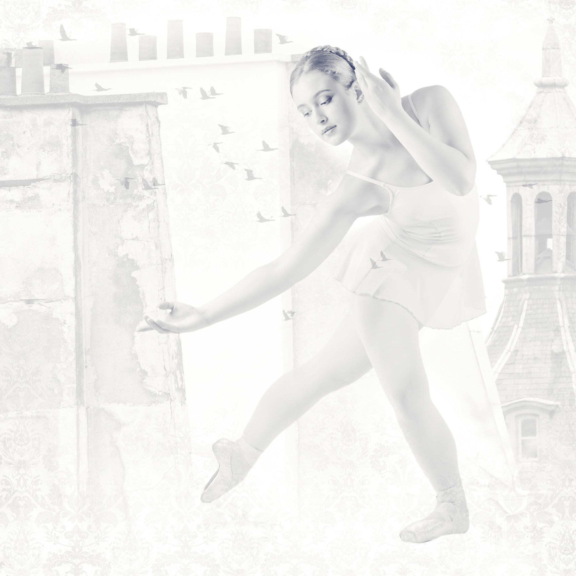 These artworks combine elements of the history of Paris with classical ballet. While ballet is steeped in history, it is an ever-evolving art form and like the city of Paris embraces the contemporary world. There is a contrast between the age and heaviness of the architecture and the lightness of the birds. Even a young dancer has spent a huge proportion of their life training and practicing their craft, yet, they survive by holding onto their dream to dance on the great stages of the world, they have to work their muscles hard in order to appear to fly effortlessly.
