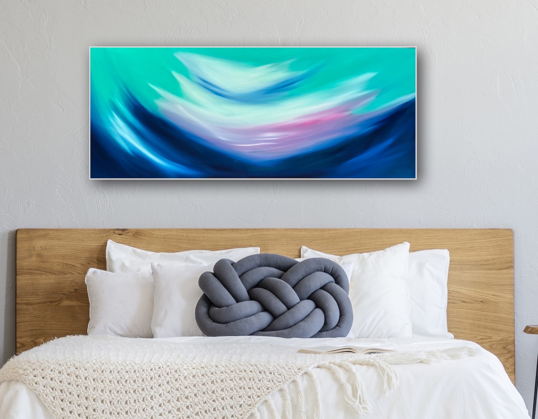 This painting is bright and fluid and resembles the vibrations that happen in our minds once we return from holidays.