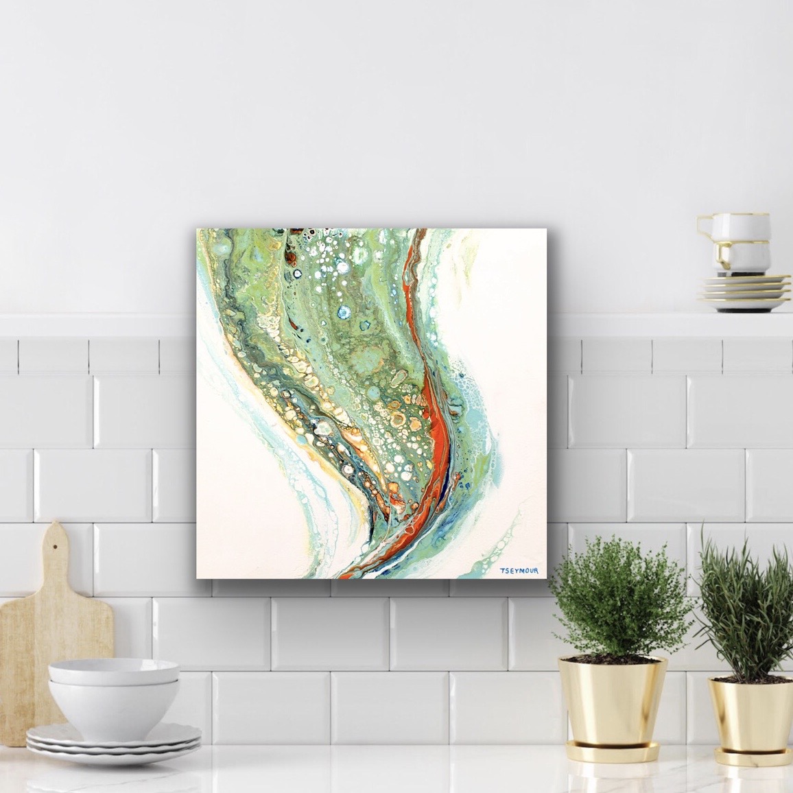 This is the fourth in a Series of 6 Acrylic Pour paintings are a tribute to how vast and how different our continent is from the rough and rugged coastlines to the hot unbearable red centre, Australia is so unique with both flora and fauna.