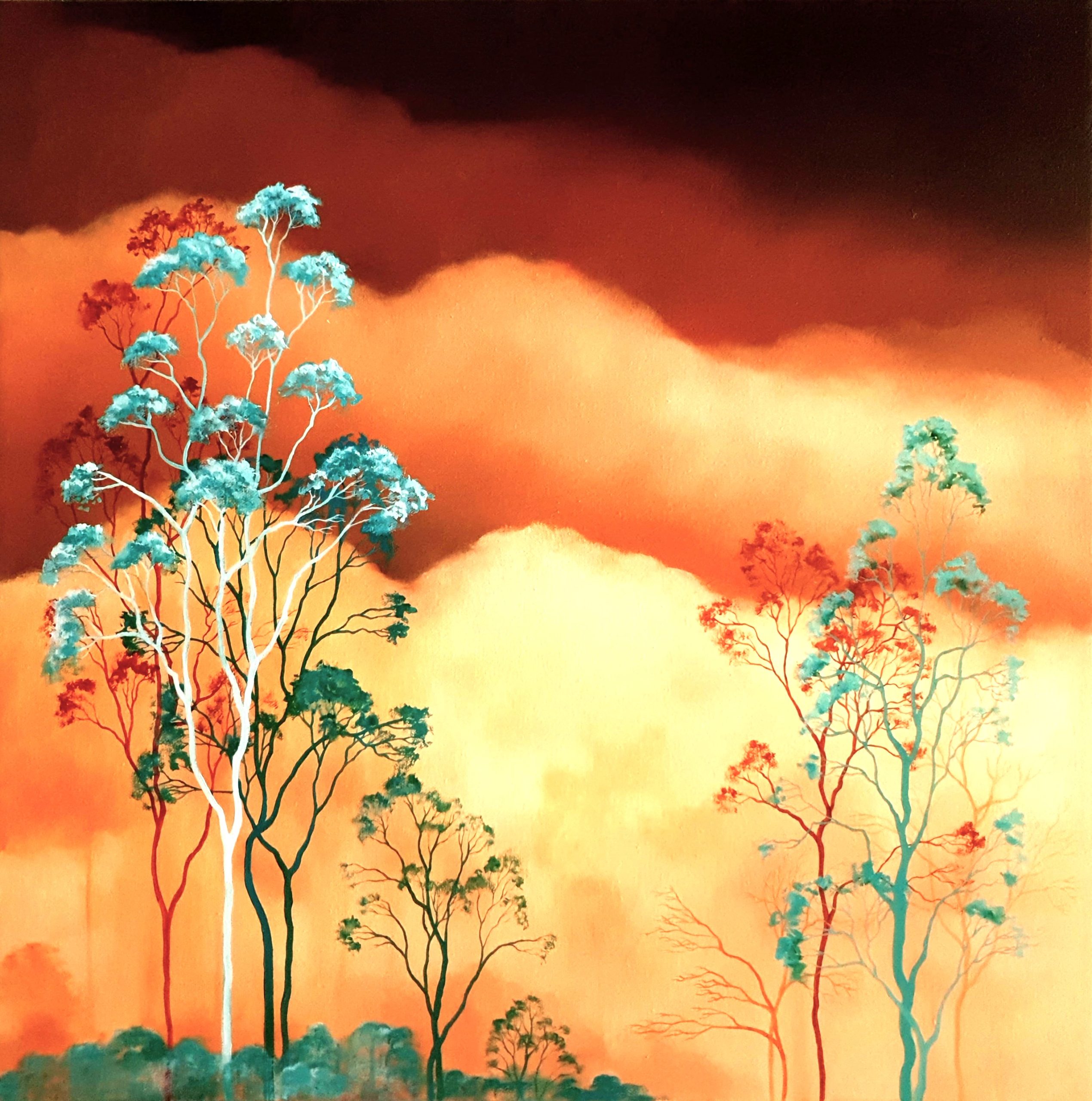 Summer Skies by Lucinda Leveille – is one of the new pieces I have been working on. I’ve decided to follow through with a series of these and have named the series “Above The Canopy”. I love this vibrant colour scheme and how this mimics the rainbow gum trees.