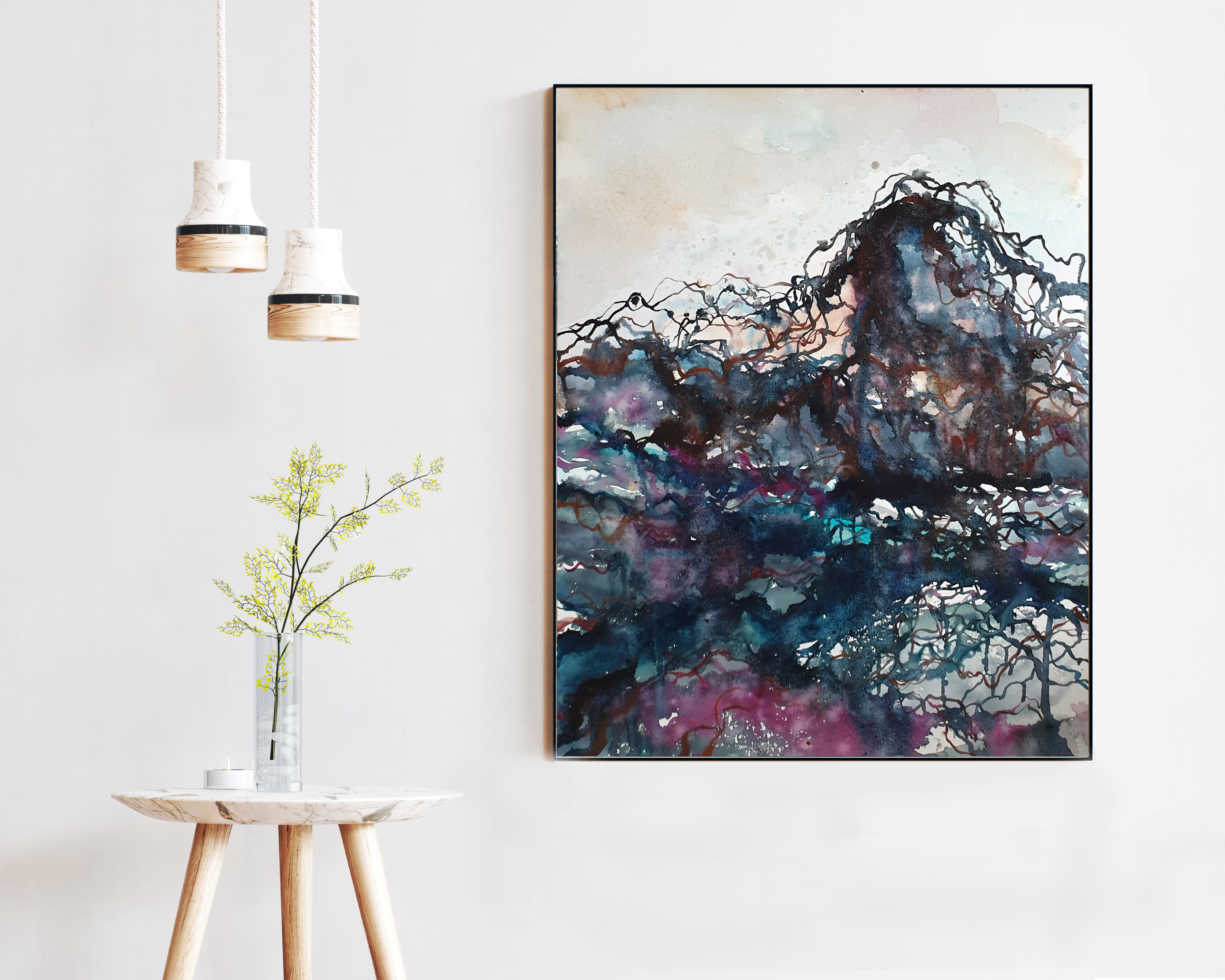 This artwork is part of Leni Kae’s series titled “Flowscapes”. Leni uses line work to express the energetic connection between nature and the elements; whilst also examining the connection between nature and the human emotional landscape.