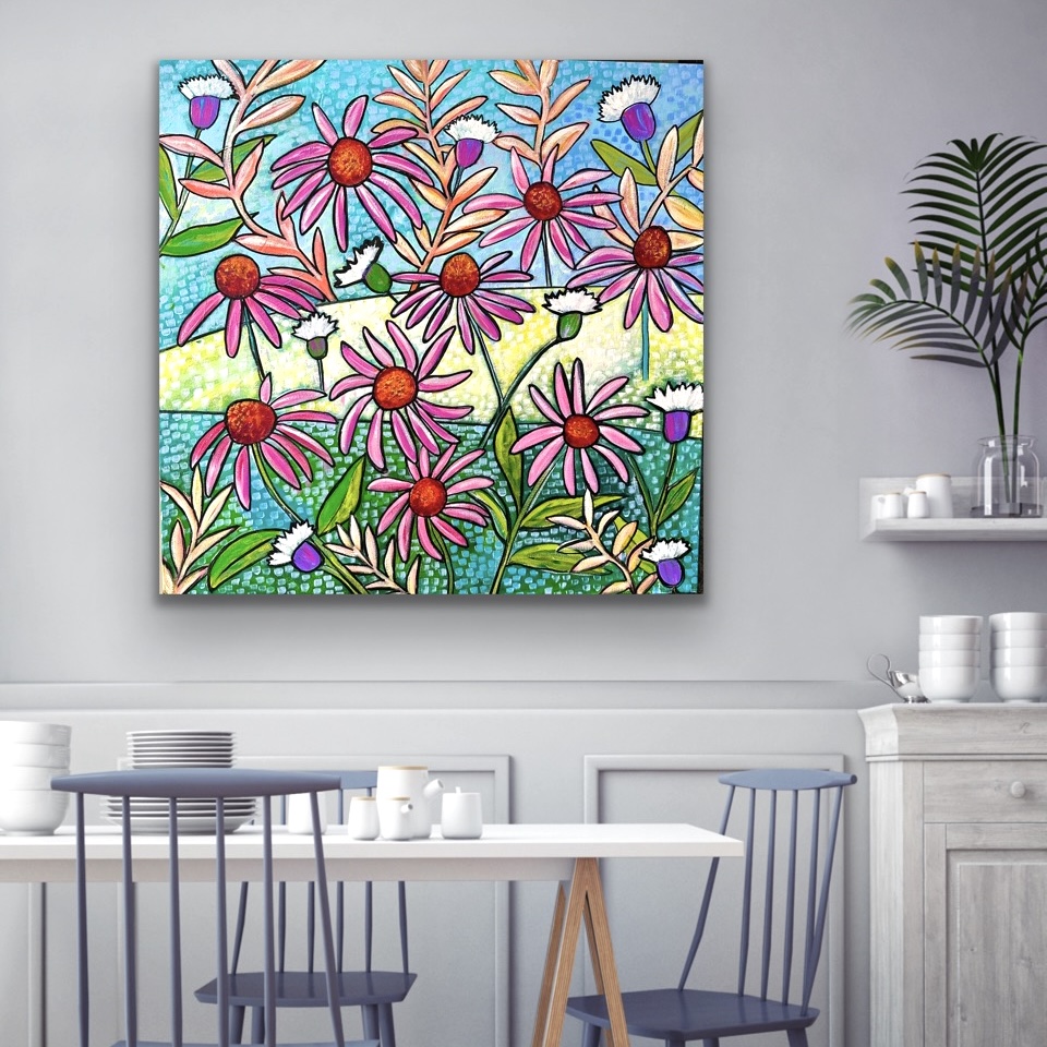 My abstract floral artwork is another addition to my “Summery Echinacea Series” of modern, contemporary paintings for home styling.
