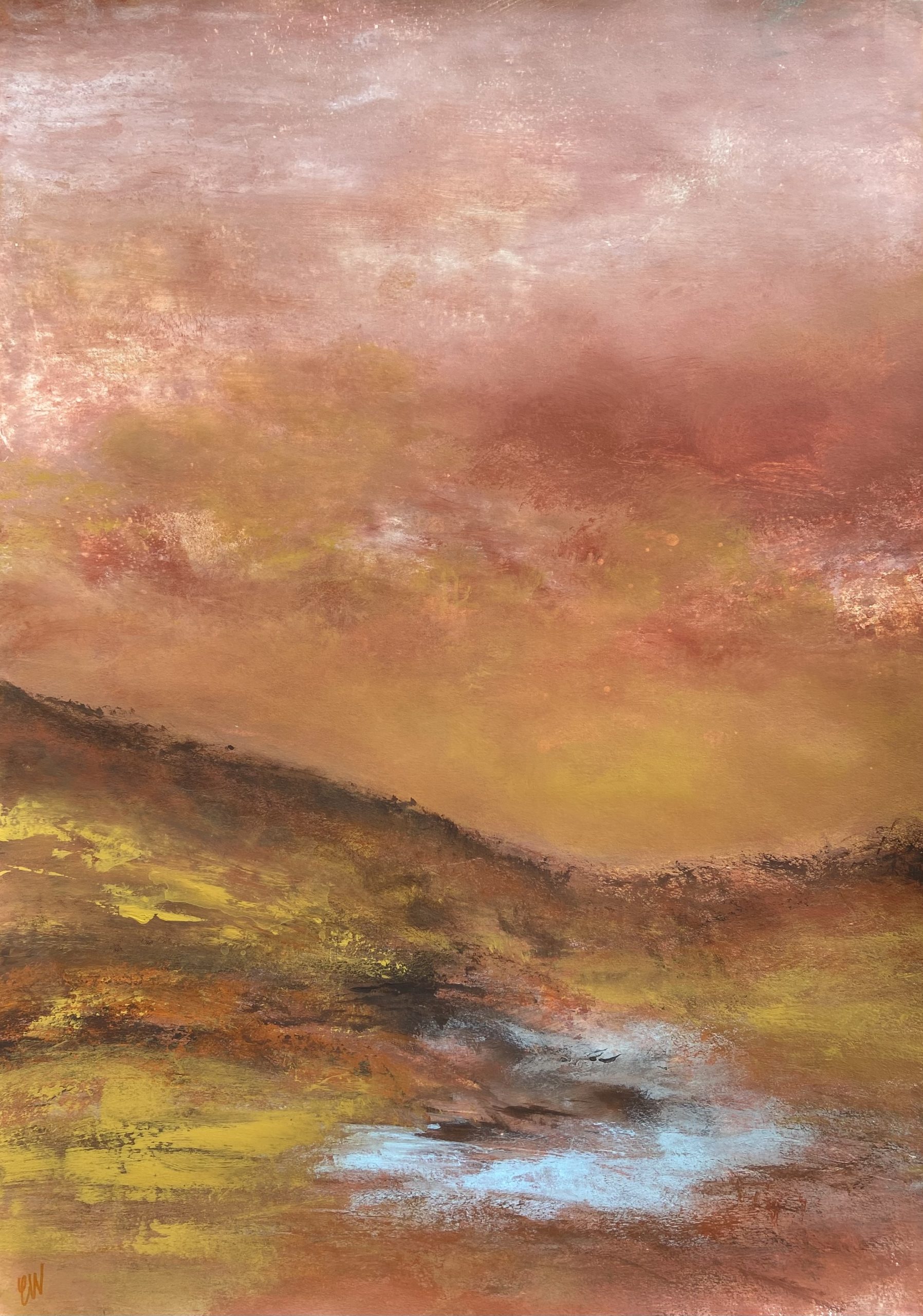 A beautiful abstract landscape painting. 59.4 x 42 cm (A2 size). Acrylic on paper. Frame not included. Requires framing.