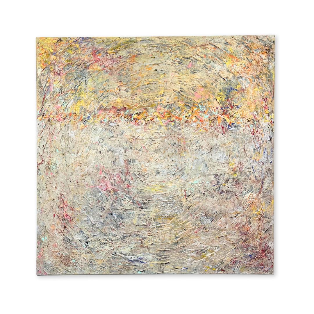 Sun On Me by Dessie O’Gorman – an original abstract painting with textured depth. Painted border. Satin finish.