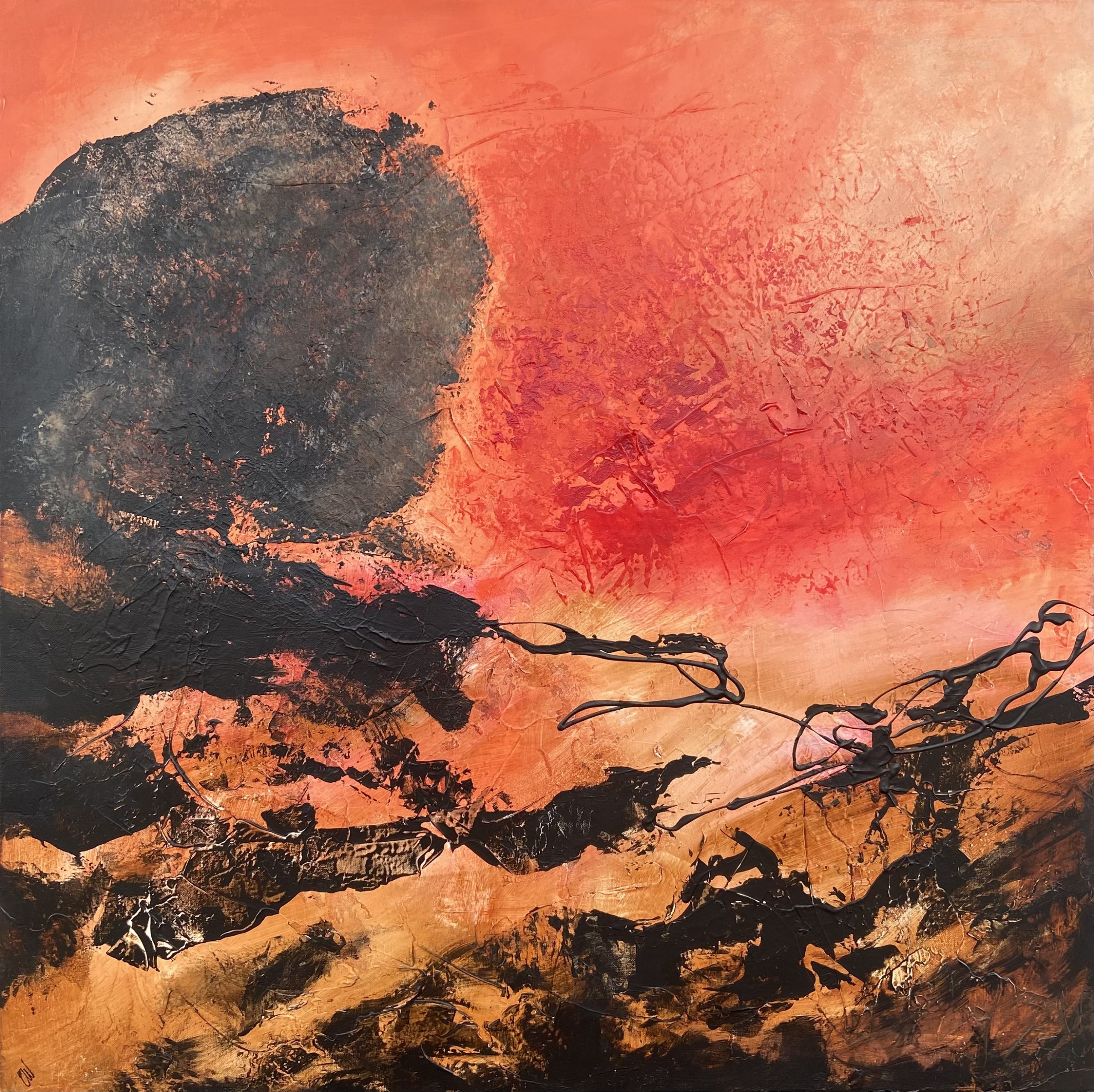 Sunburnt Country by Carrie Welsh is a beautifully textured abstract landscape artwork. Acrylic on canvas, ready to hang. Frame not included. 90 x 90 x 2cm.