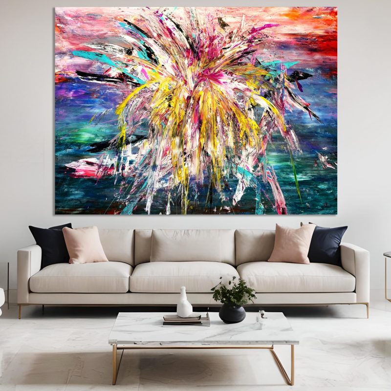 Quality acrylics used giving long lasting rich pigmentation/lustre. Designed on acid free environmentally unbleached cotton duck, triple coated with universal primer, heavy duty stretcher bars were used to reduce warping. Protective Matte Varnish applied. Signed by the artist and ready to hang.