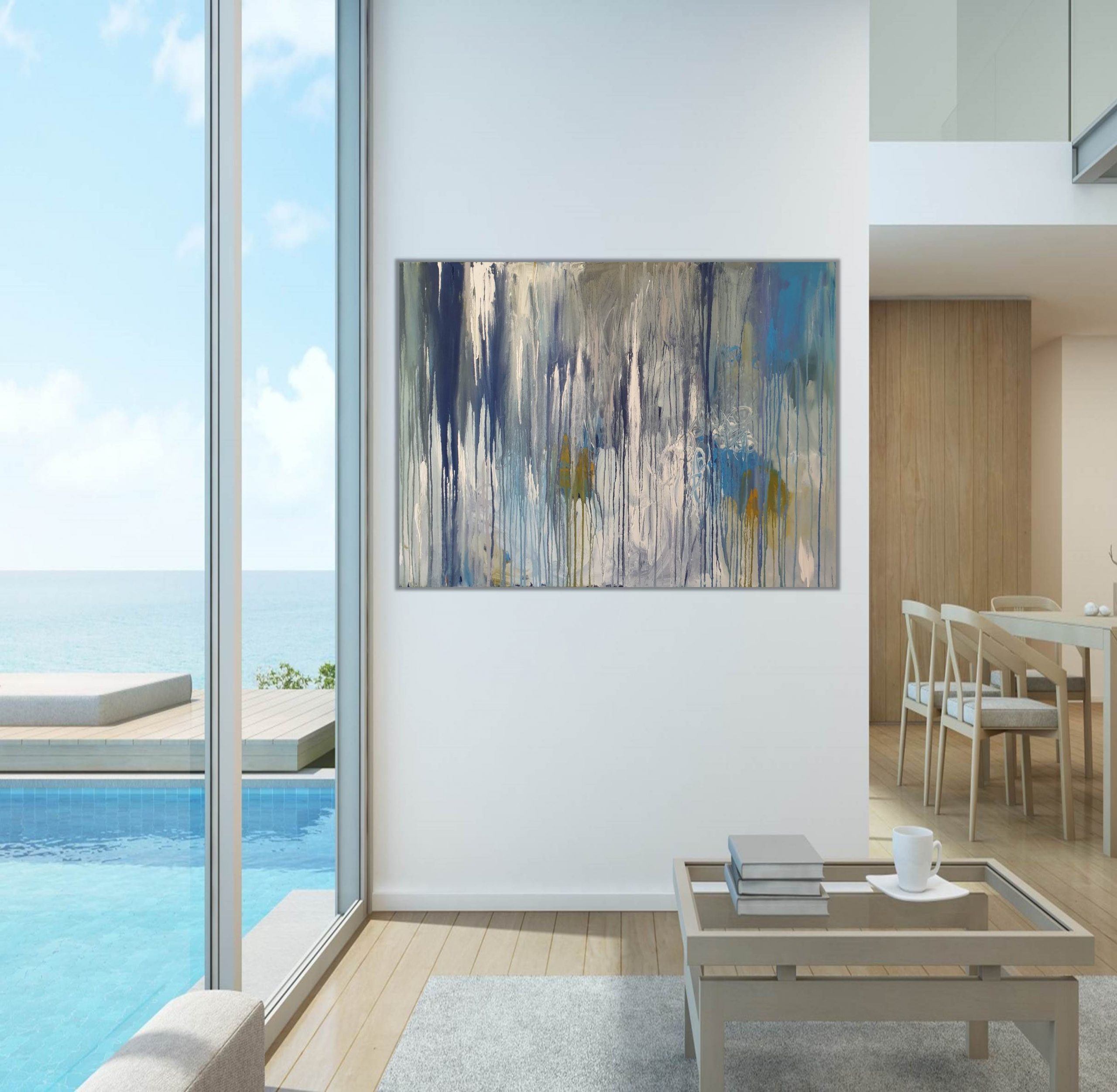 Minimal, decorative, fresh and modern in approach; I hope this artwork captures a feeling of a beautiful day spent on or near to the water. A coastal view. At home equally in your home, office or corporate setting.