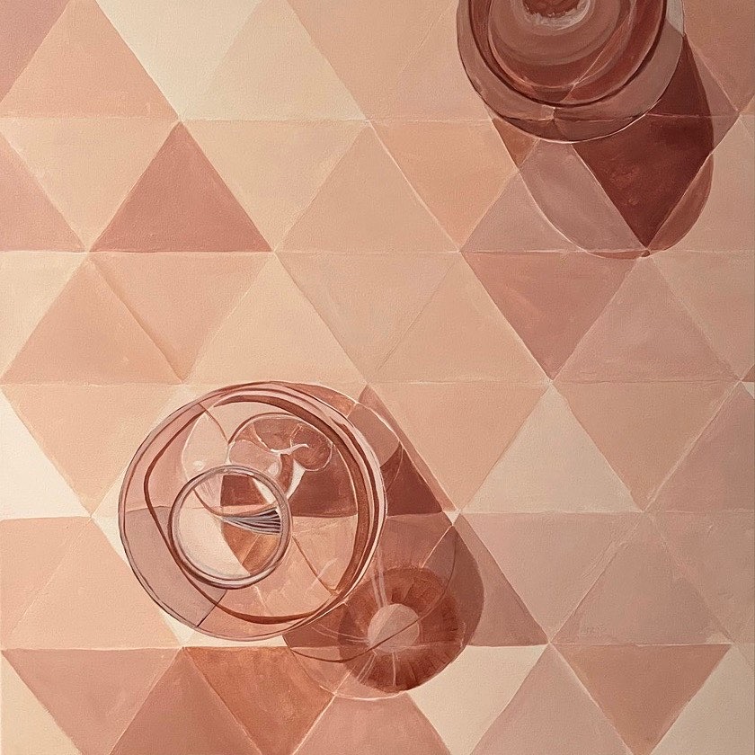 This beautiful piece explores calming neutral colour tones and simple shapes to create a lovely balanced composition through the use of shadow, light and glass vessels. Perfect for any room on its own or paired with Stolen Moments.