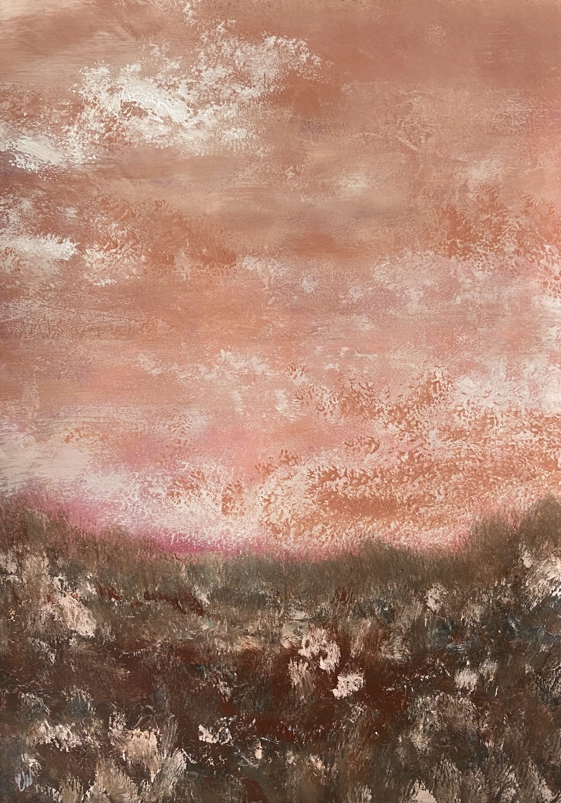 A beautiful abstract landscape painting. 59.4 x 42 cm (A2 size). Acrylic on paper. Frame not included. Requires framing.