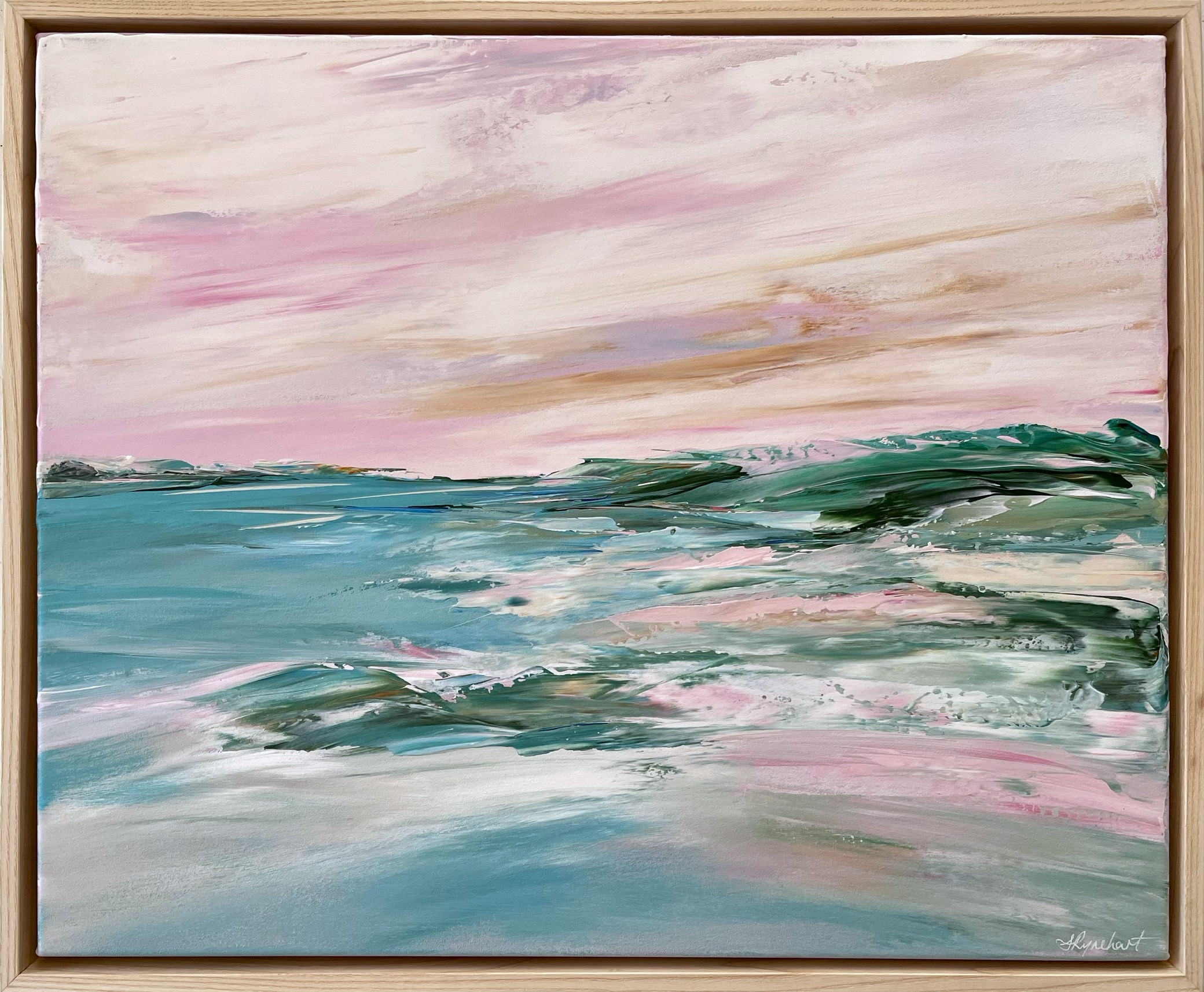 Created with a palette knife on artist quality gallery wrapped stretched cotton canvas, and framed in Natural Ash, this original seascape is satin varnished, and comes with a COA.