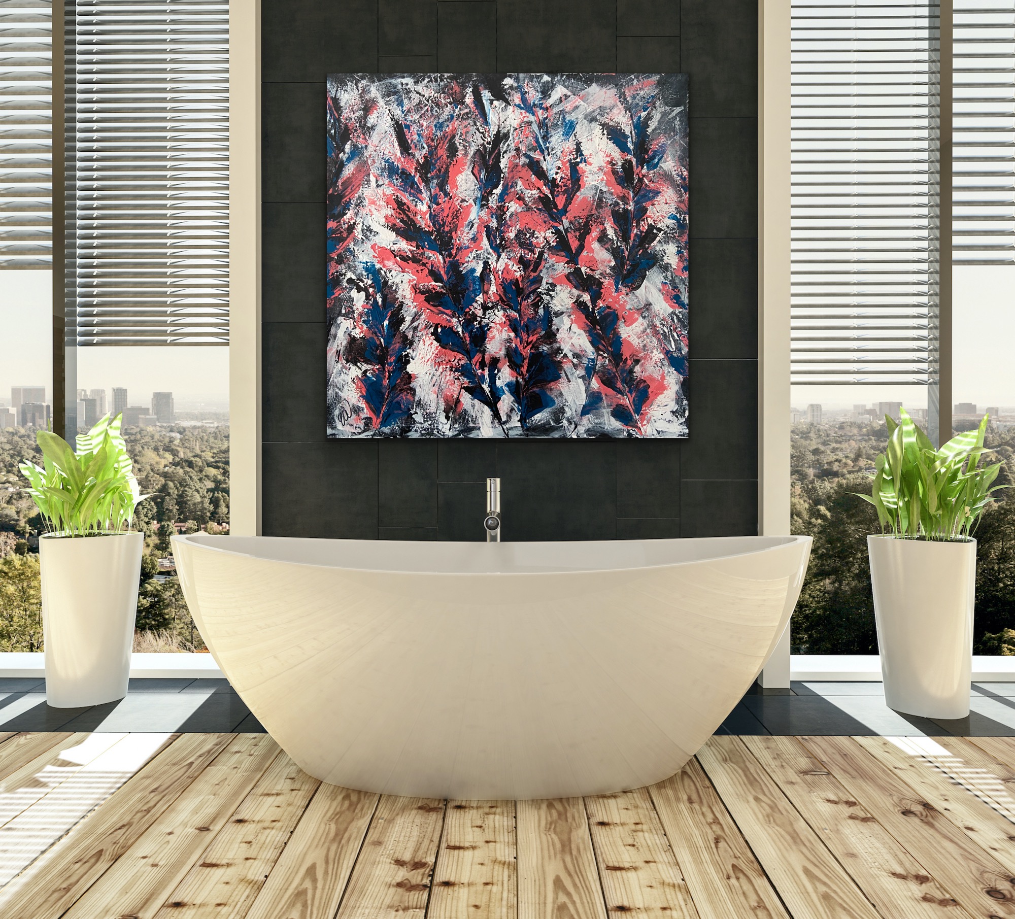 Sundown by Carrie Welsh is a beautifully textured botanical abstract piece set at dusk. This will bring life to any room. 91.4 x 91.4 x 2cm. Acrylic on canvas, ready to hang.