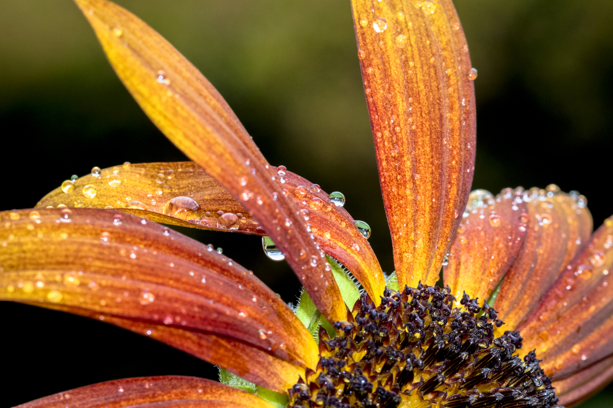 This macro photograph captures the delicate beauty of a sunflower on a fresh Australian morning, its petals glowing in rich shades of orange, gold, and red. Tiny dewdrops rest gently on the velvety textures, catching the light like sparkling jewels. The vibrant colours and intricate details radiate natural splendour, evoking feelings of freshness, joy, and vitality. This artwork not only celebrates the simple wonders of nature but also brightens up the day with its warmth and energy. A striking piece that invites the viewer to pause, look closer, and marvel at life’s small yet powerful moments of beauty.  Viewers enjoy the way the dew magnifies the petal textures and enhances the sunflower’s vibrancy feels both intimate and uplifting. It has the power to make a space feel more alive and cheerful.