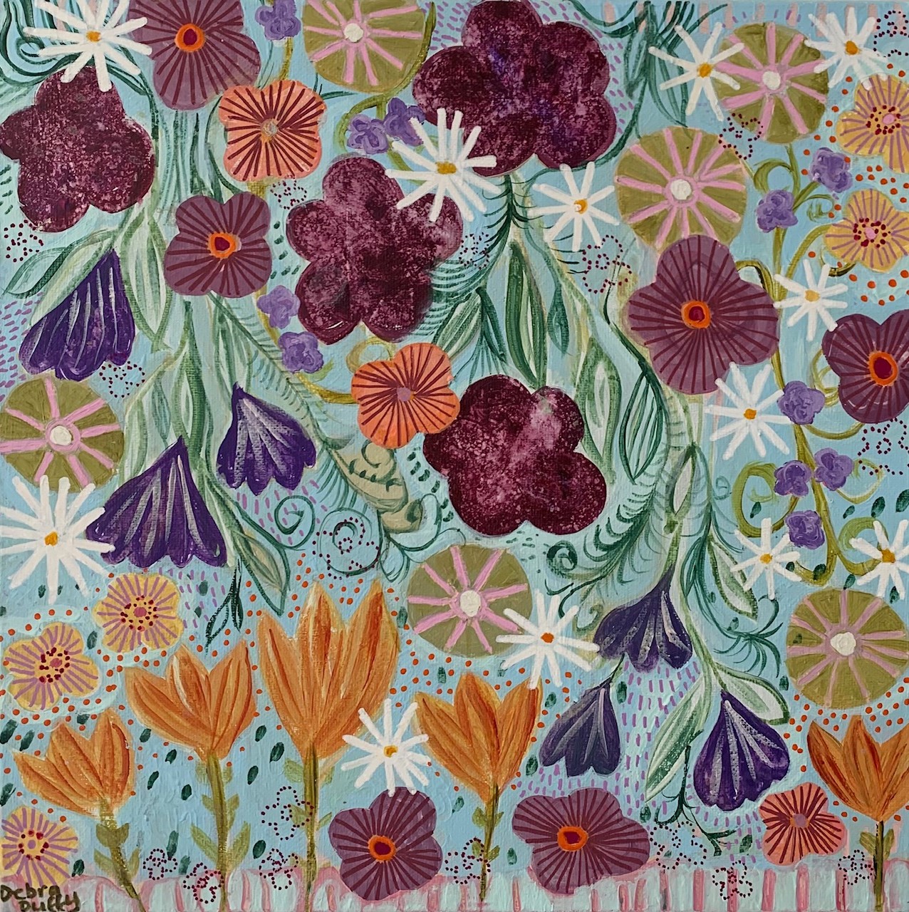 This little artwork is a magical Springtime inspired botanical abstract that is part of my blooms series, using contrasting textures, line work and patterns. A celebration of the abundant floral displays for this this time of year and a small piece of joy to bring inside to your space.