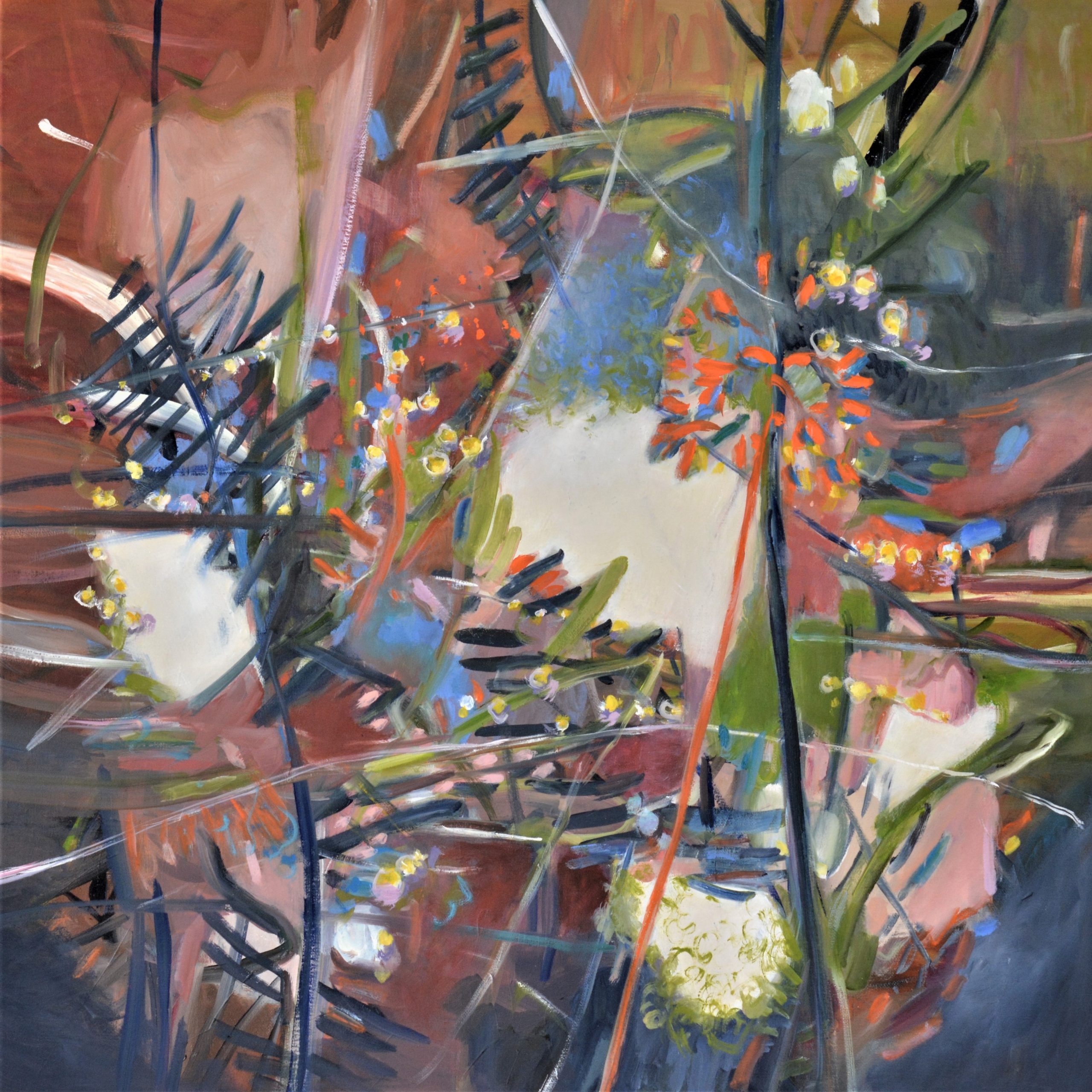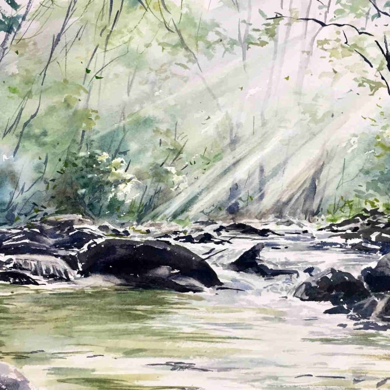 Sunlit patterns by Dianne Smith is inspired by a brief moment where bright patches of light interact with foliage on the surface of water in a creek bed.
