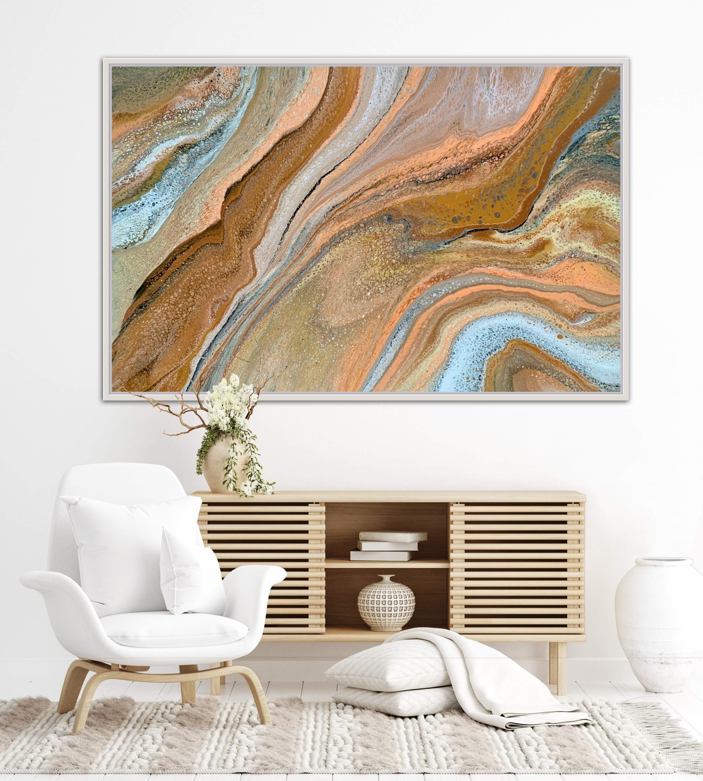‘In situ’ photos have been included to help with visualisation of the artwork in your home. In situ photos provided were created using the ArtStage app and may not be perfectly to scale. This being said, every effort has been made to represent the size of the art accurately but please read the dimensions of the artwork to ensure it fits your space perfectly. Where provided, photos of framed art are for illustrative purposes only.