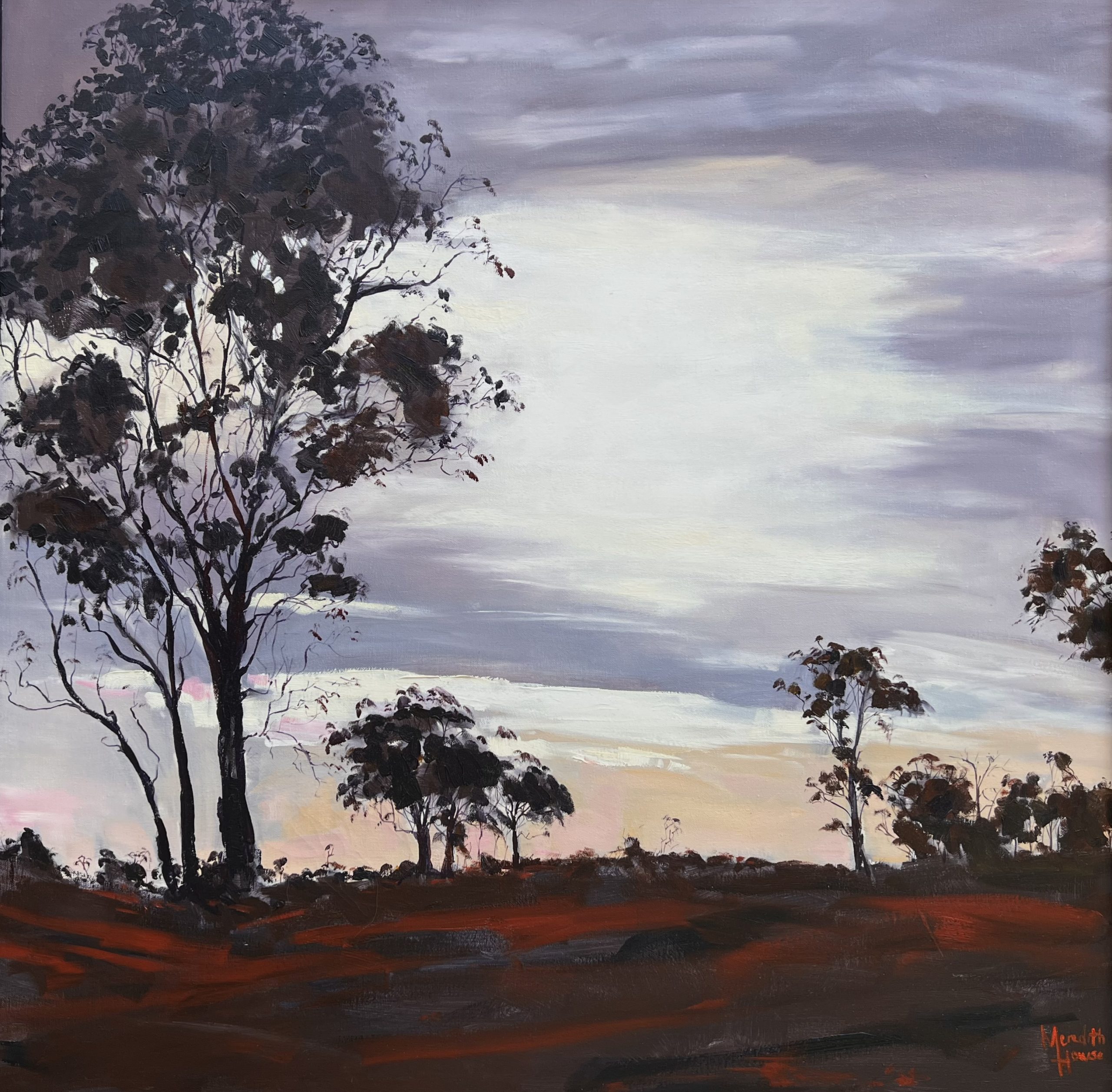 Inspired the warm reds of the soil, and the silhouette of the trees in the early morning light.