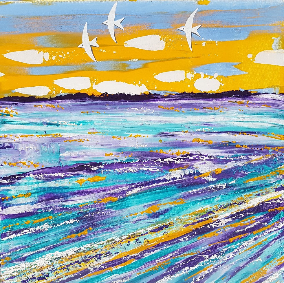 Painting wraps around sides of canvas – no need to frame – signed on side & back.